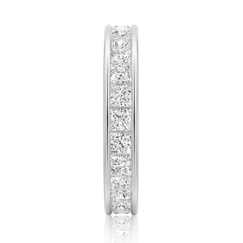 Channel Princess Cut Moissanite Diamond Eternity Band Sterling Silver Ring