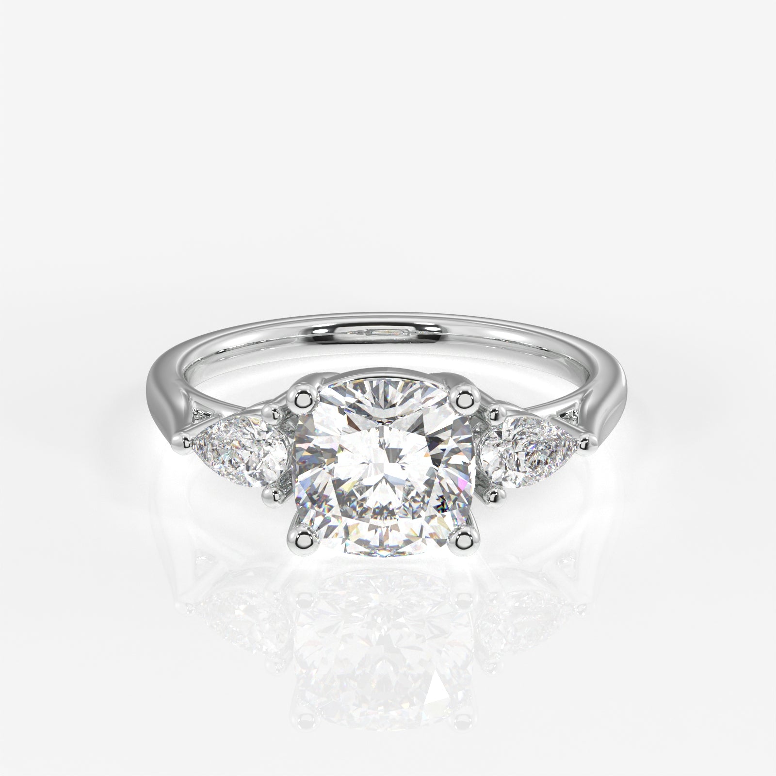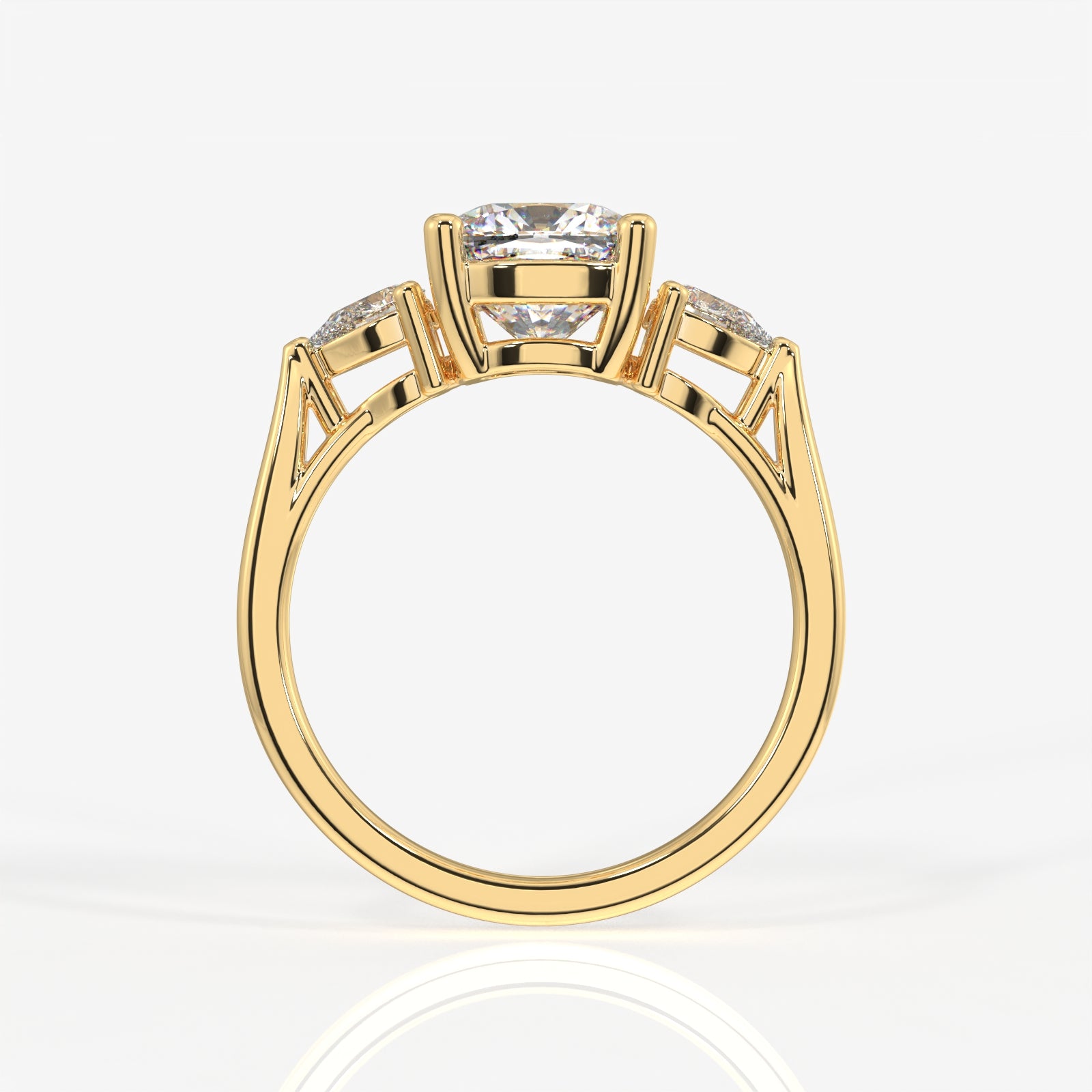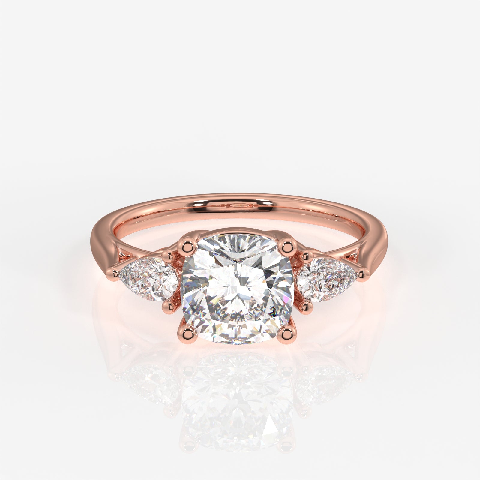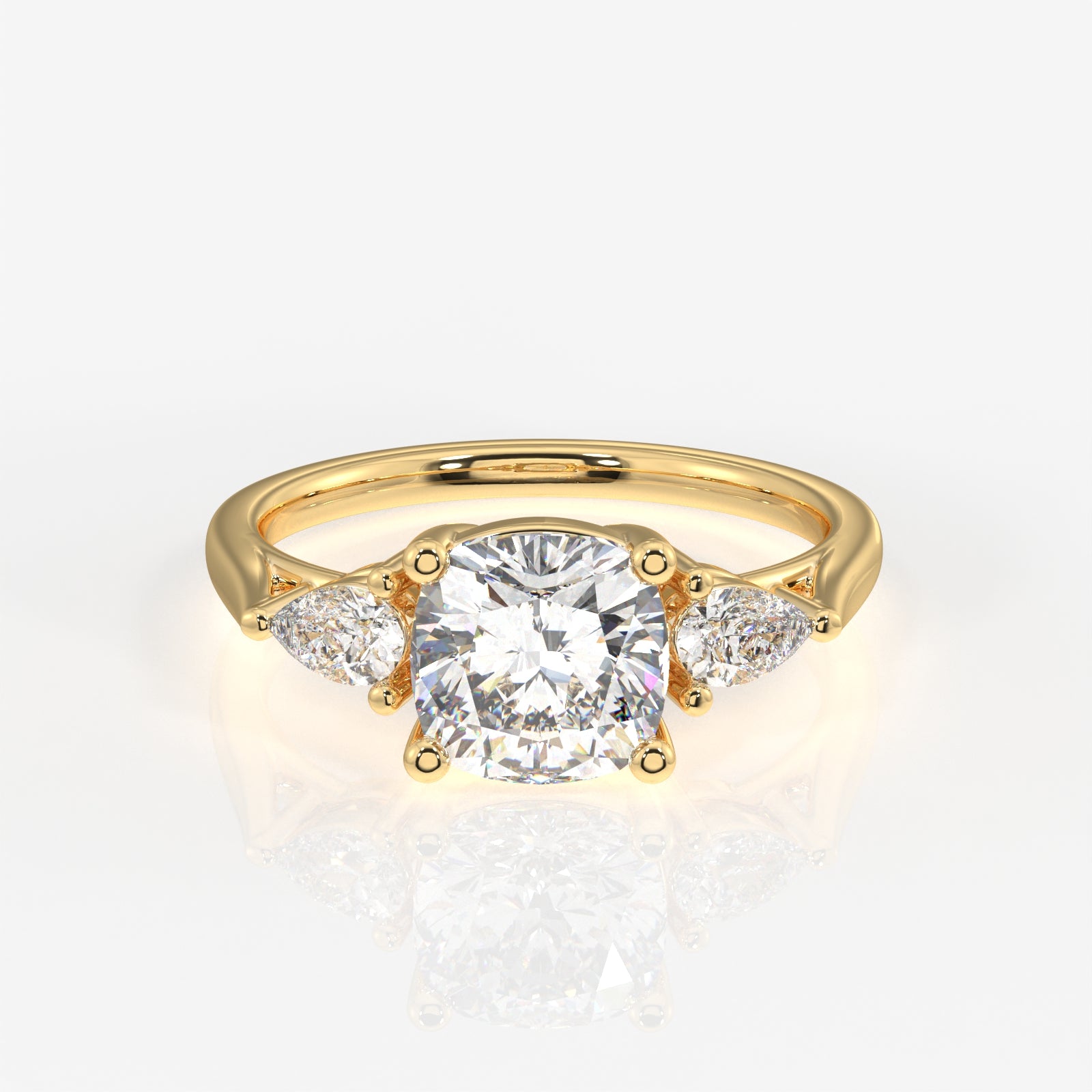 Cushion and Pear Cut Lab Grown Diamond Three Stone 14K Gold Ring