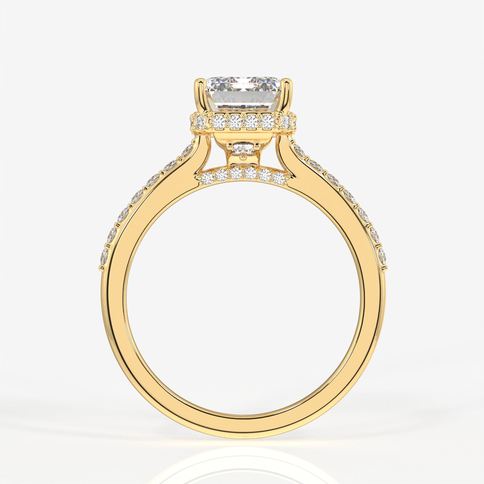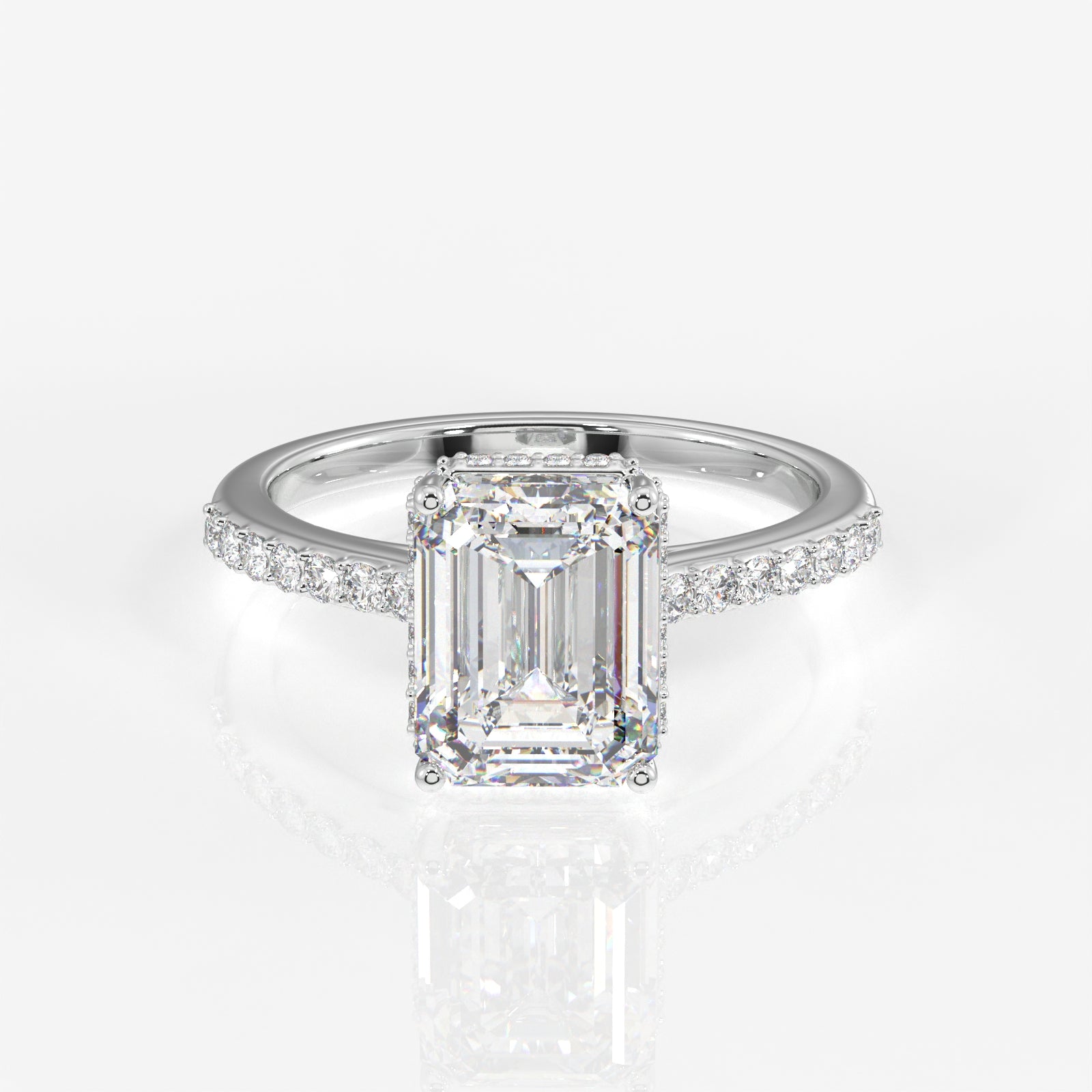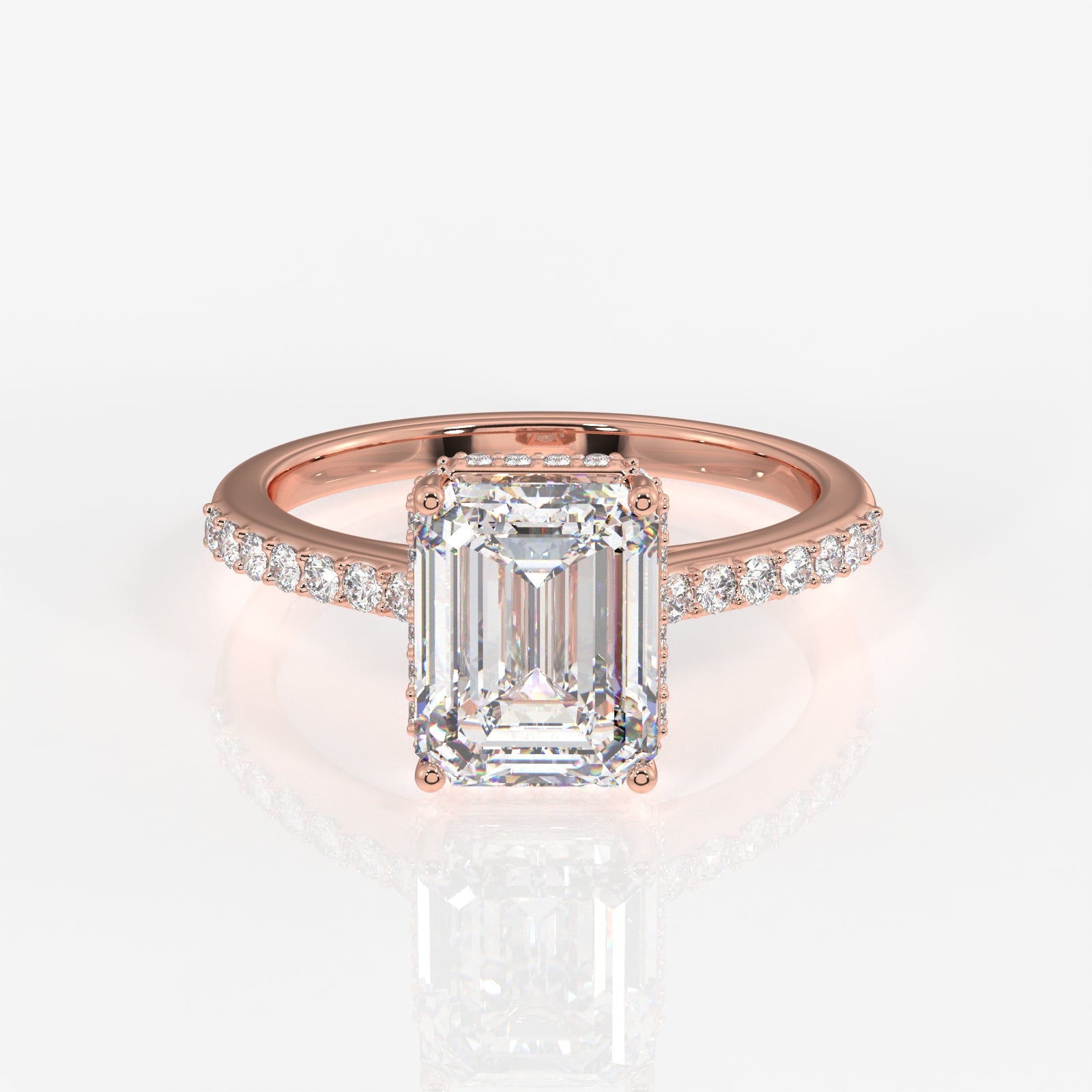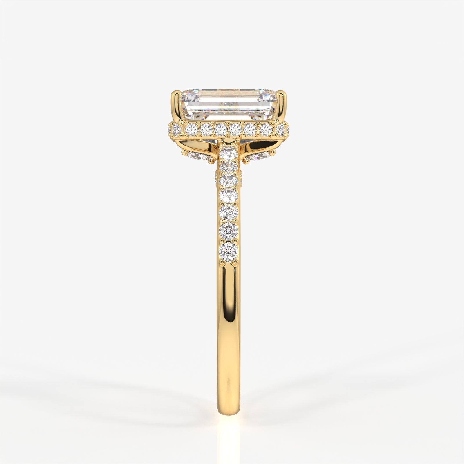 Emerald Cut Lab Grown Diamond Hidden Halo 18k Gold Ring
