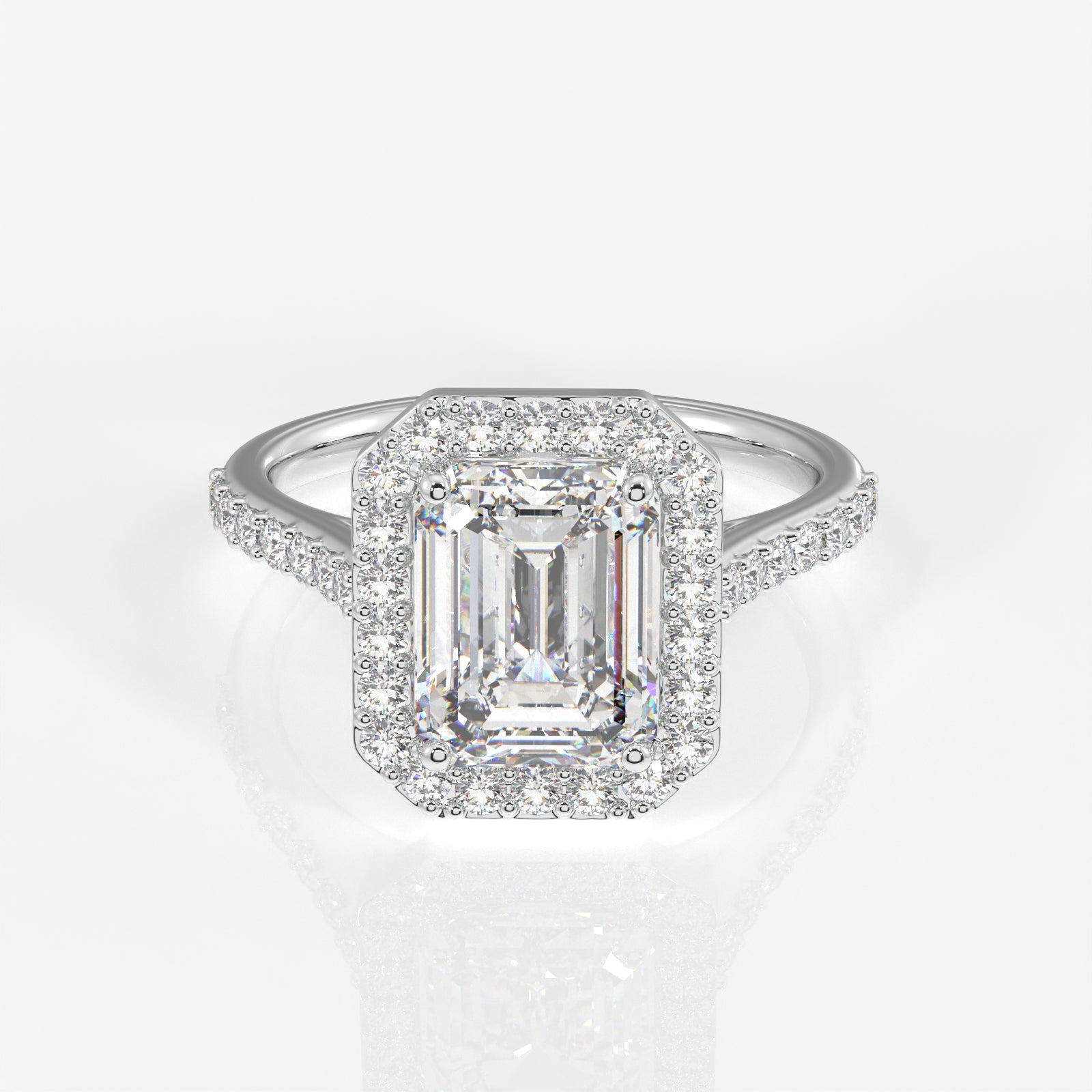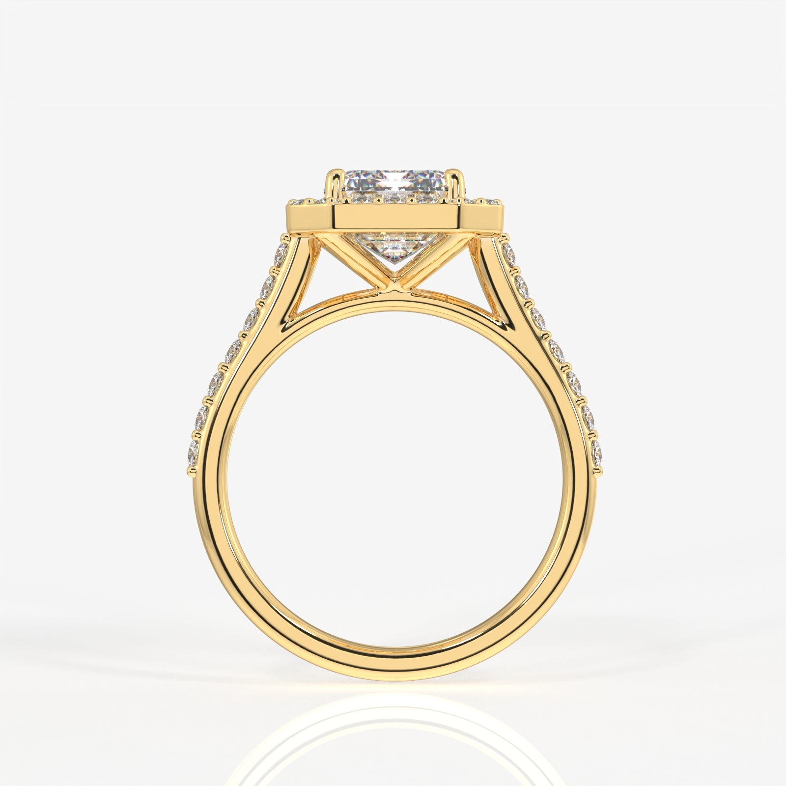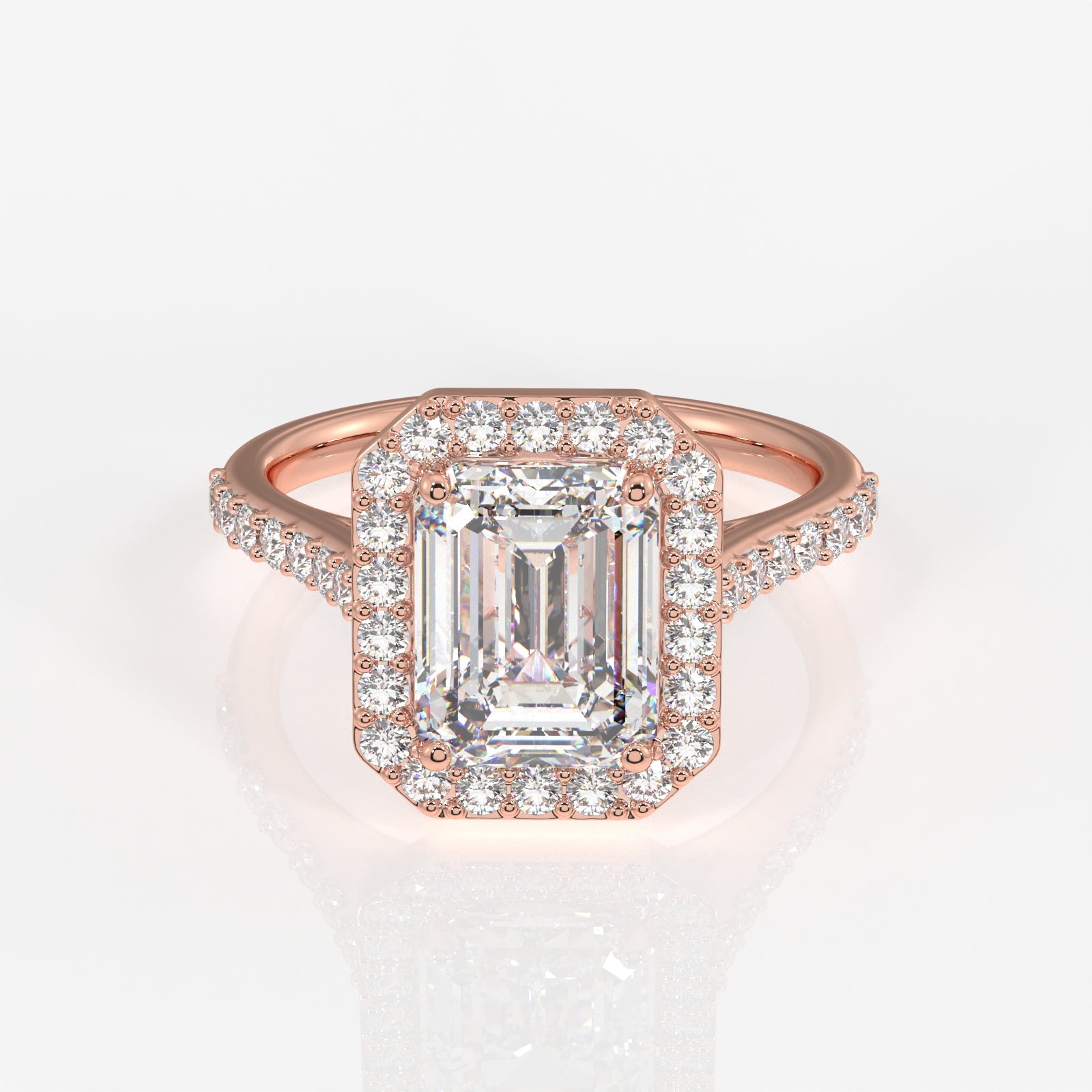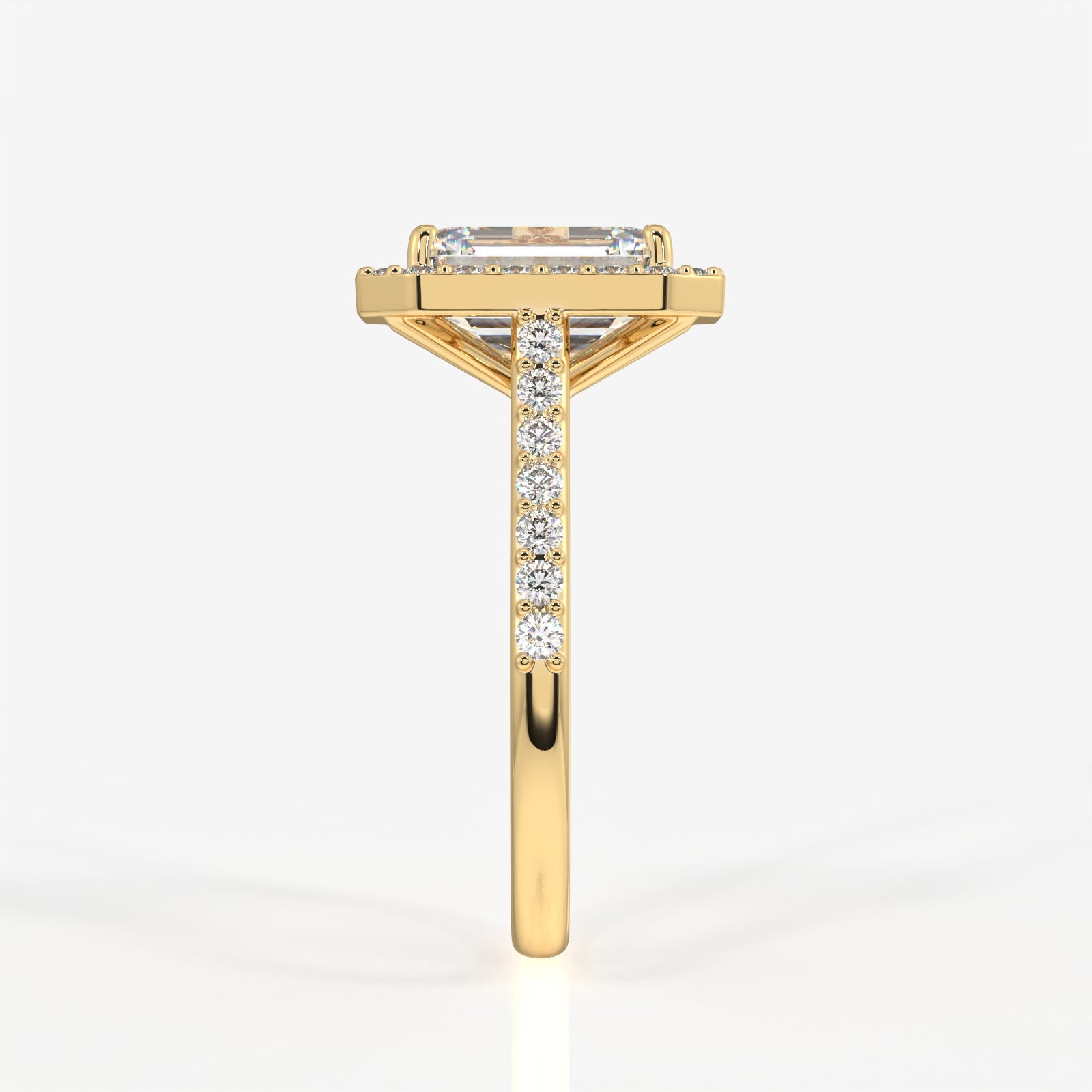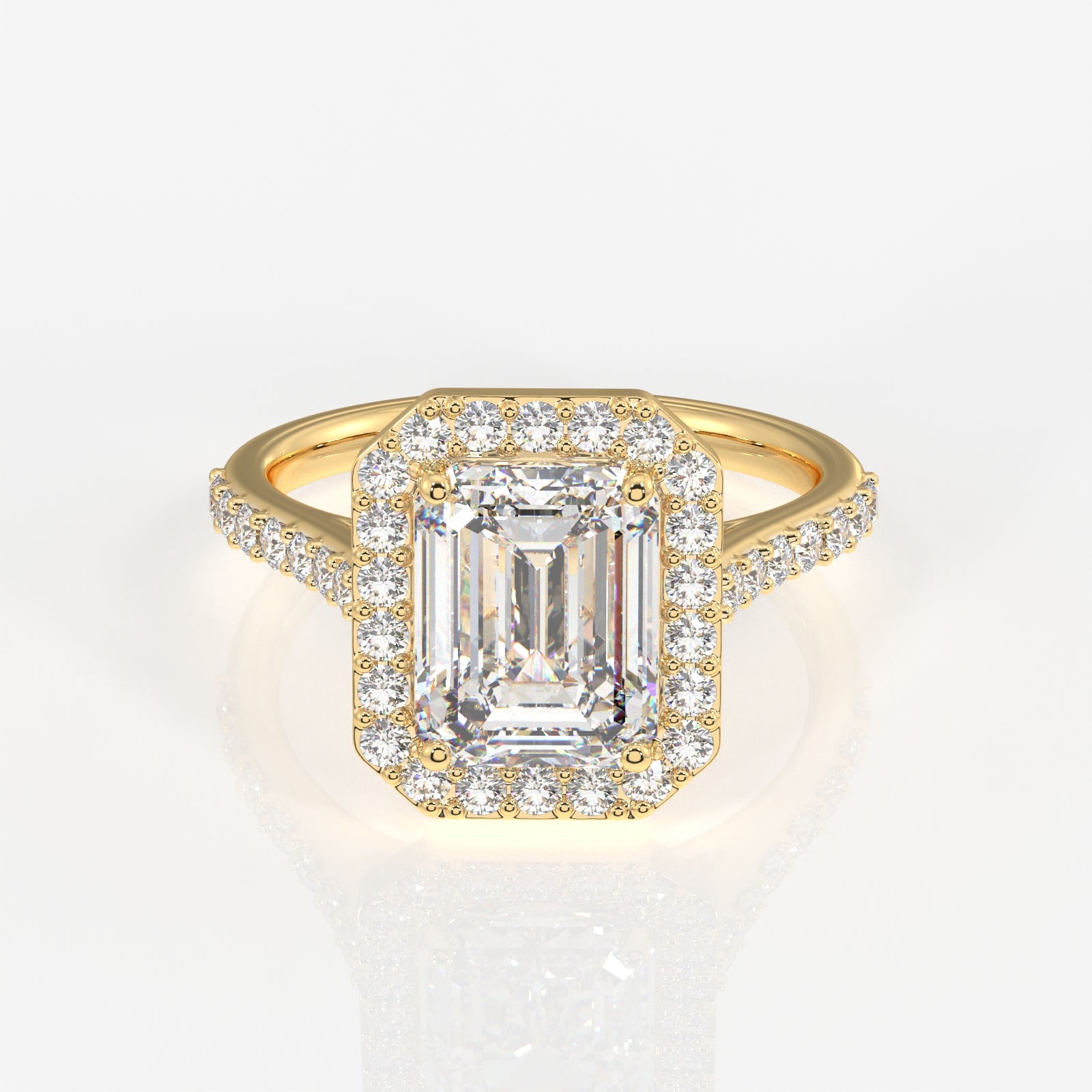 Emerald Cut Moissanite Diamond Halo Engagement 14K Gold Ring