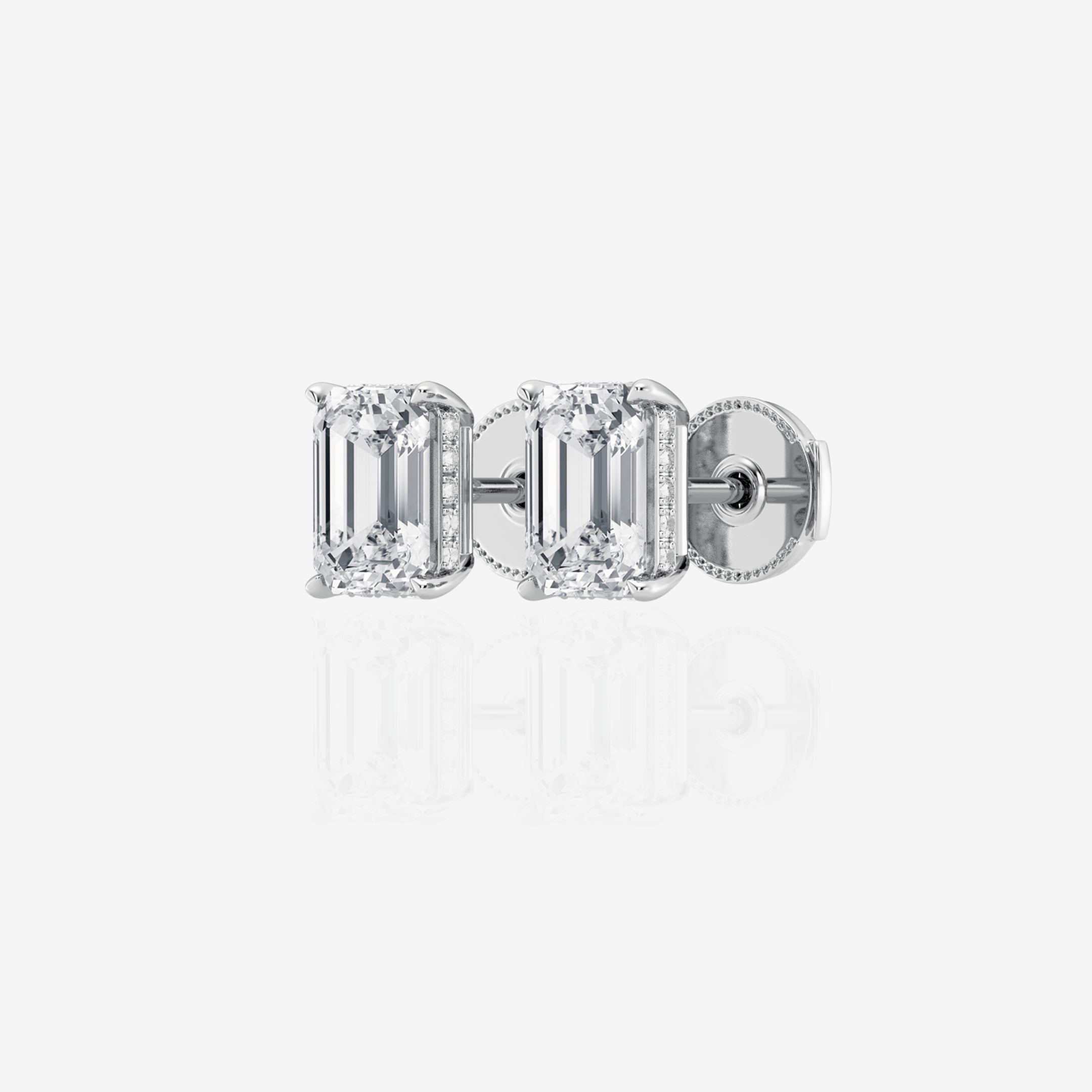 Emerald Cut Moissanite Diamond Hidden Halo Stud Sterling Silver Earrings