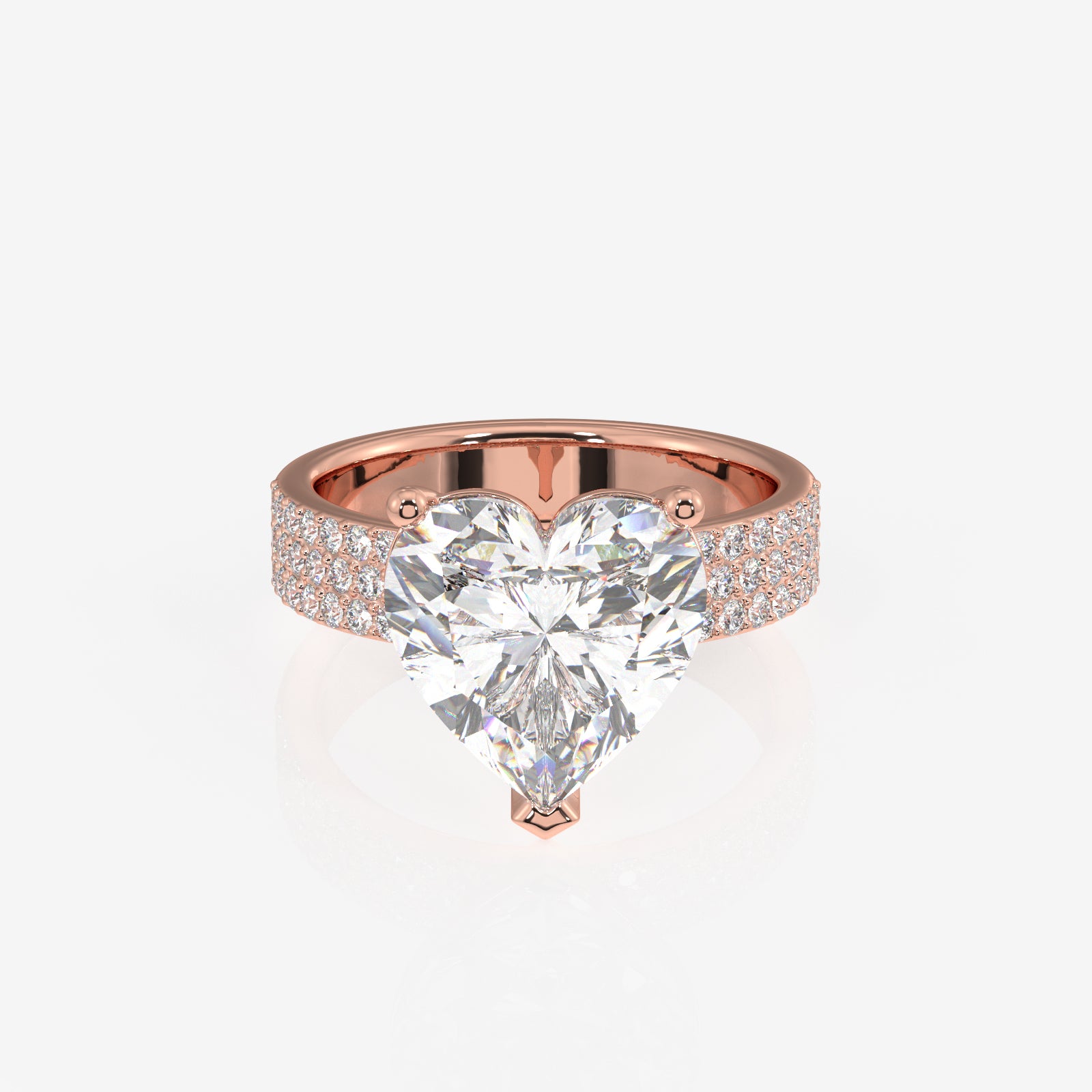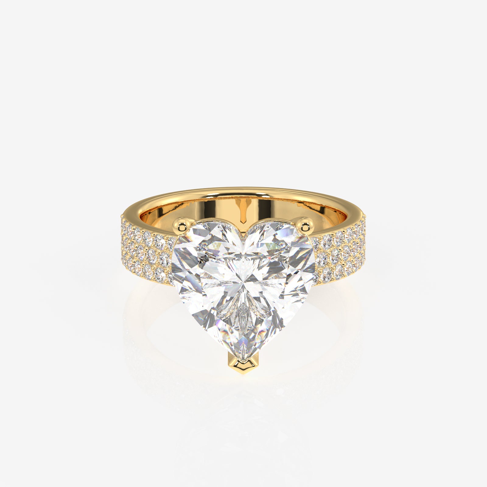 Heart Cut Lab Grown Diamond Three Layer Pave 14K Gold Ring