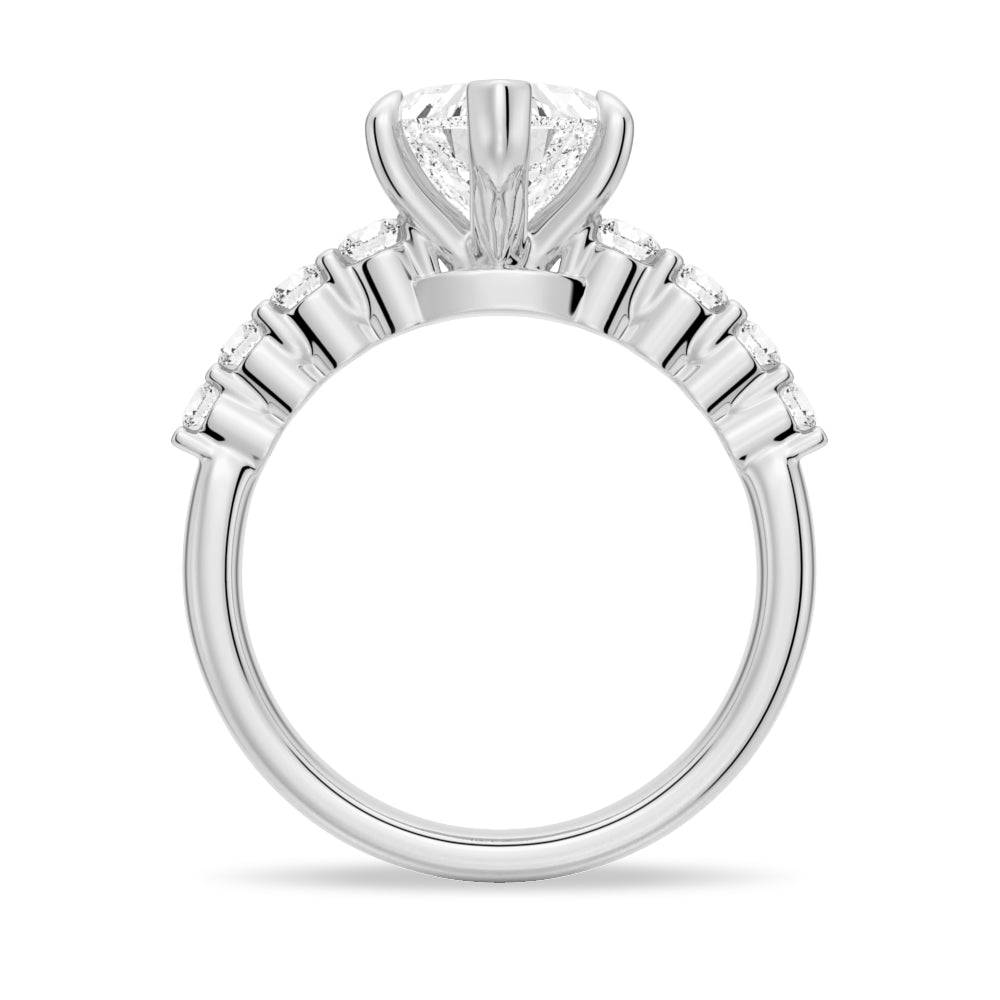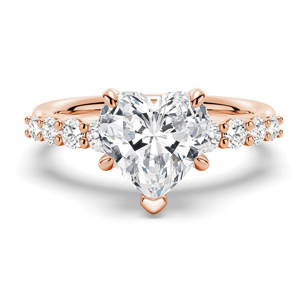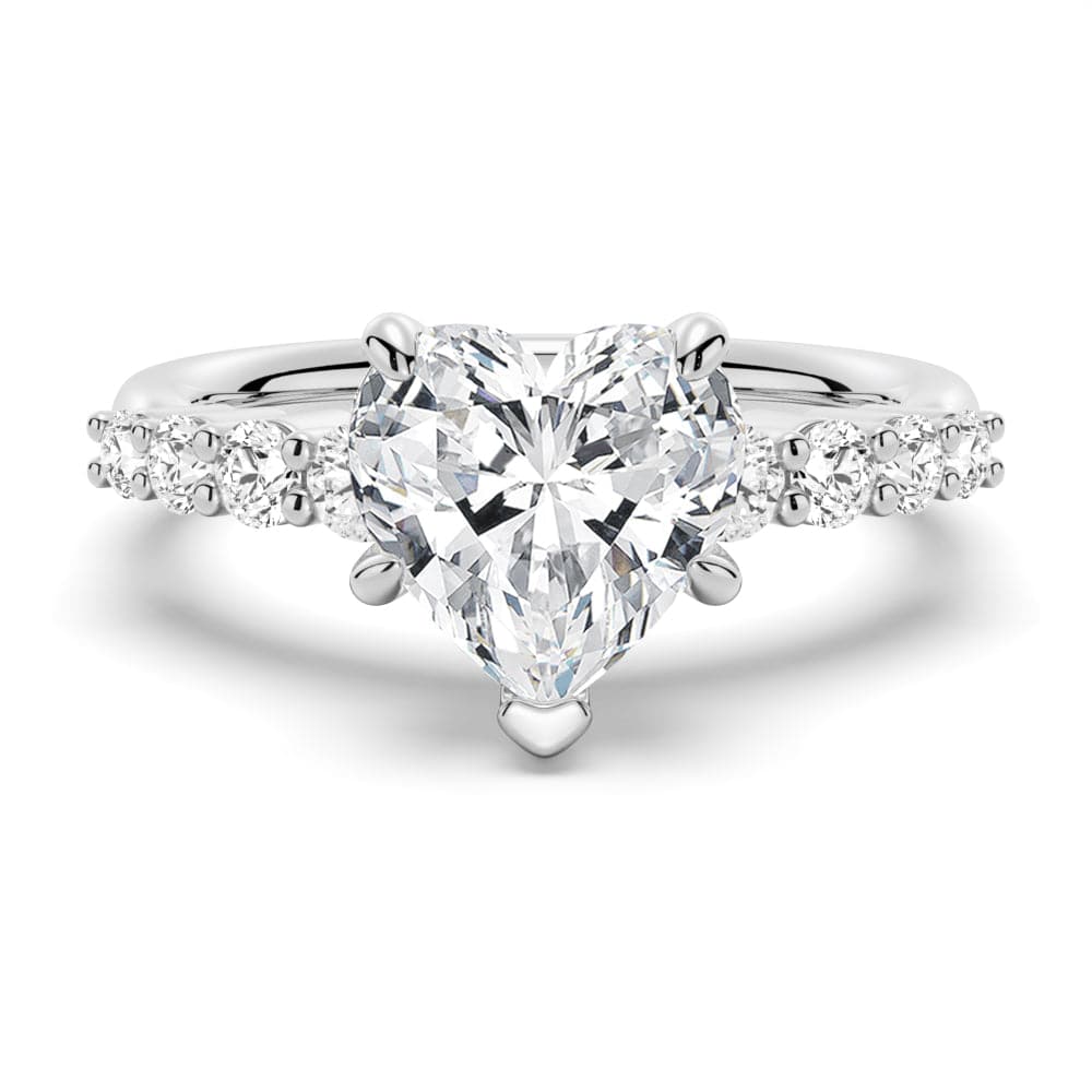Heart Cut Moissanite Diamond Five Prong Pave Sterling Silver Ring
