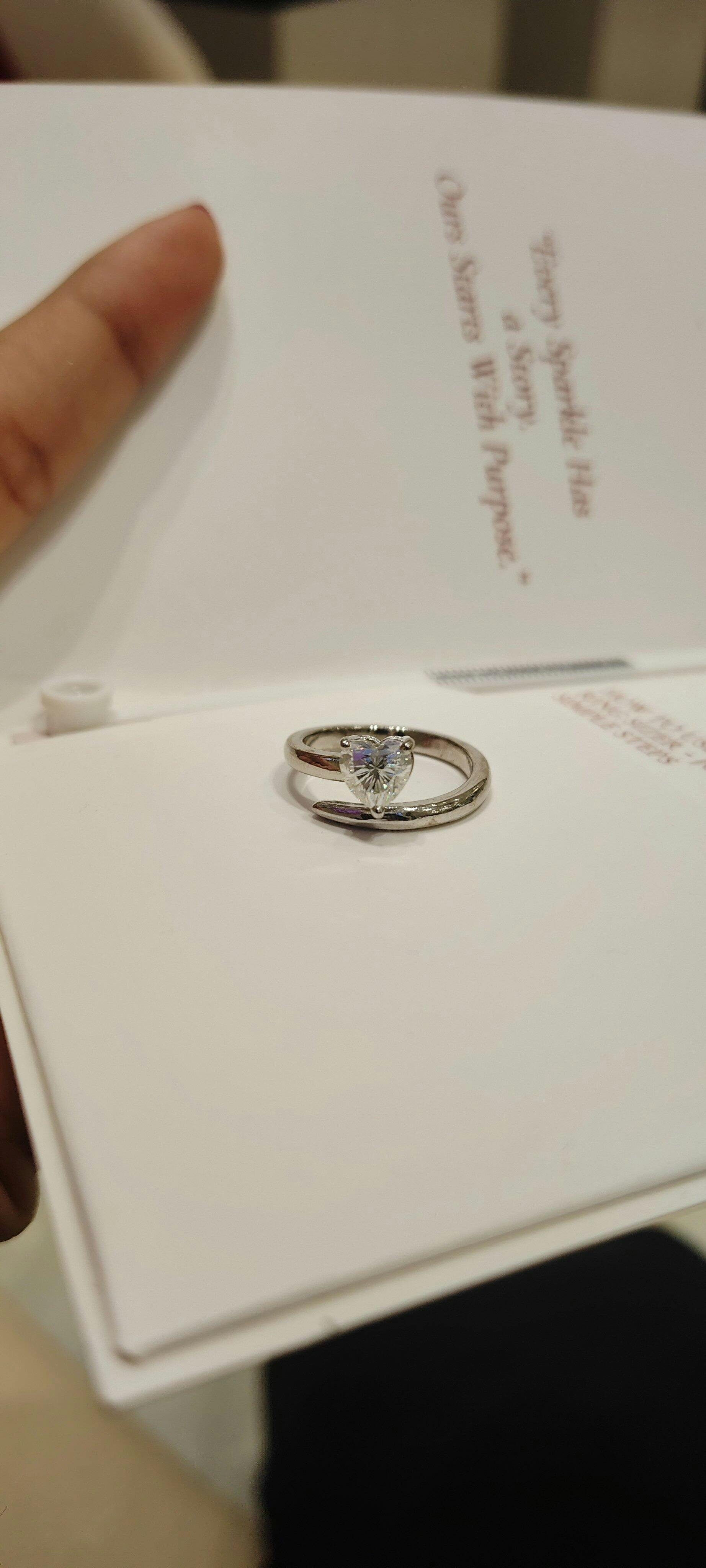 Heart Cut Moissanite Diamond Solitaire Sterling Silver Ring