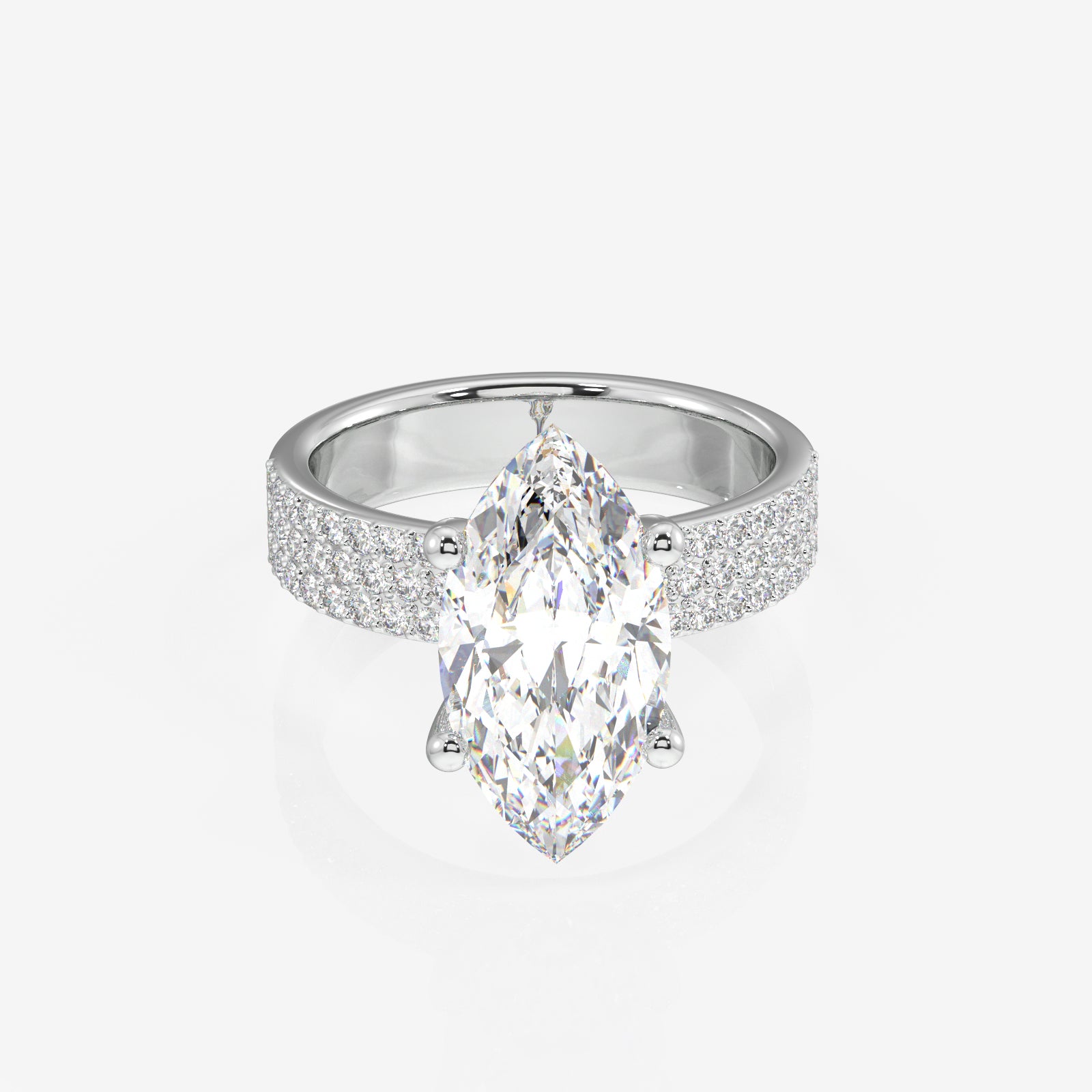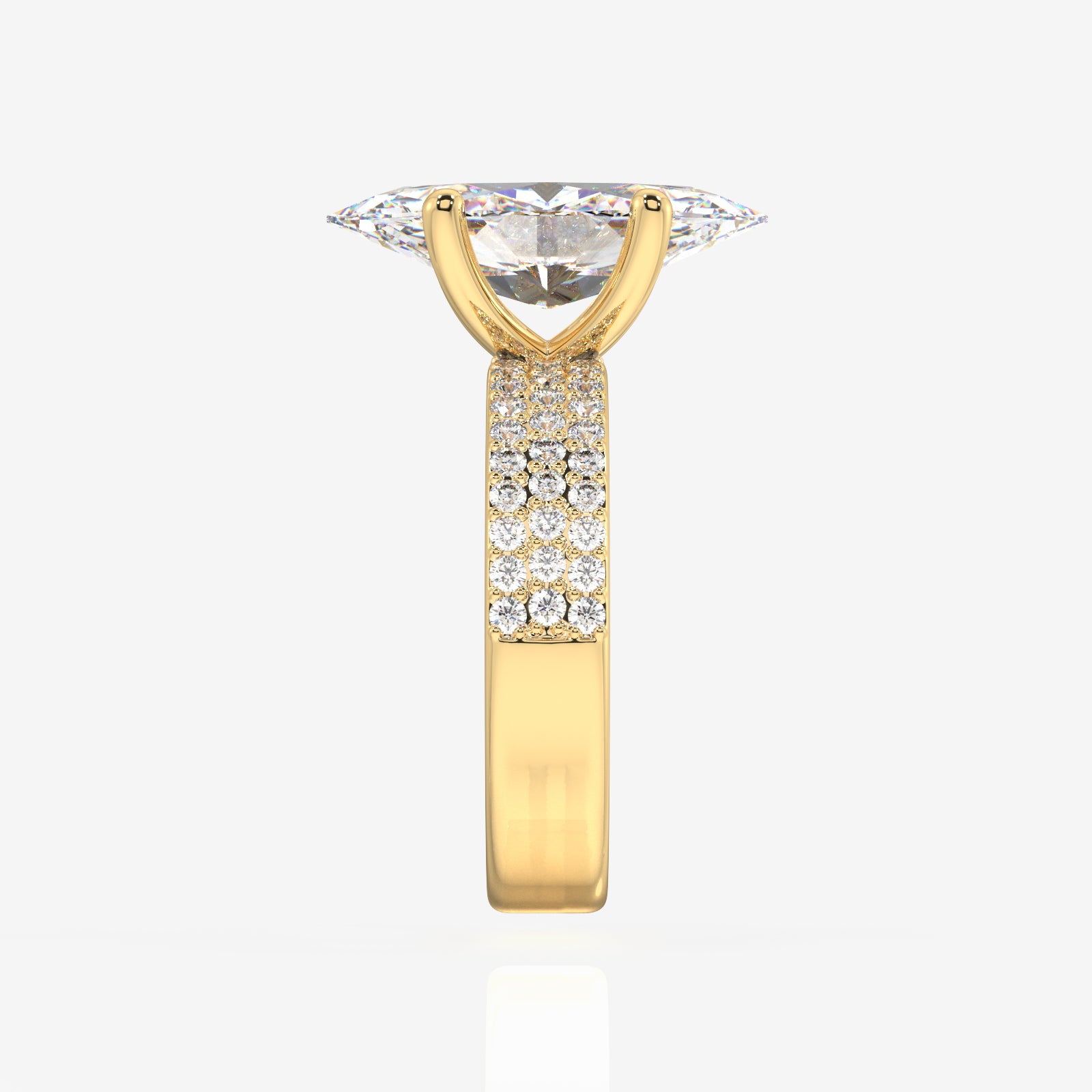 Marquise Cut Lab Grown Diamond Three Layer Pave 14K Gold Ring