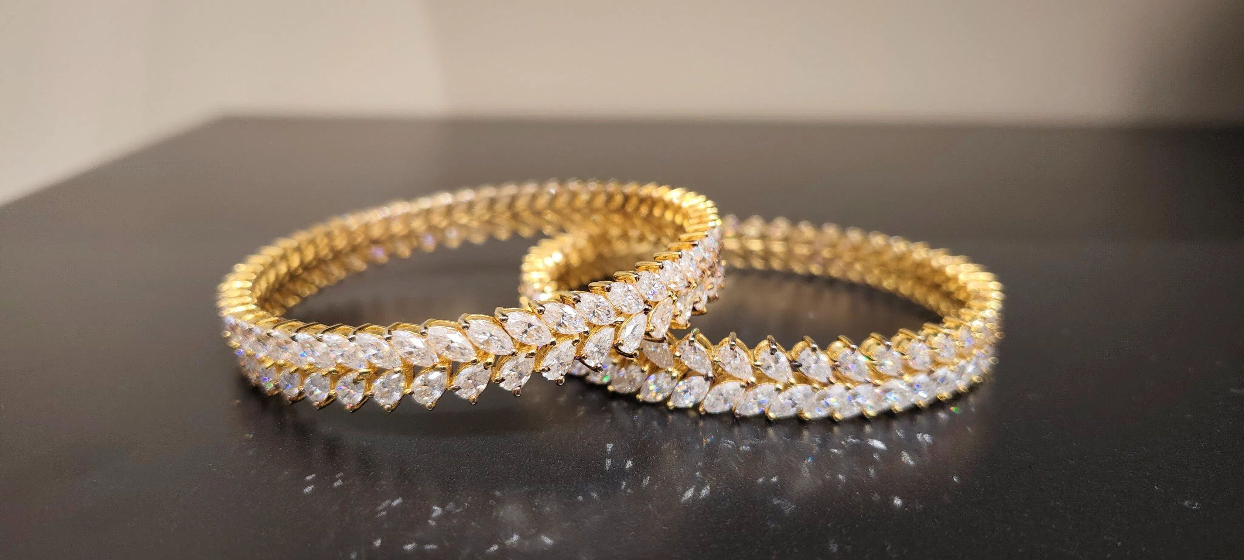 Buy Caratbazaar Pear and Marquise Cut Moissanite Diamond 18K Gold Bangle