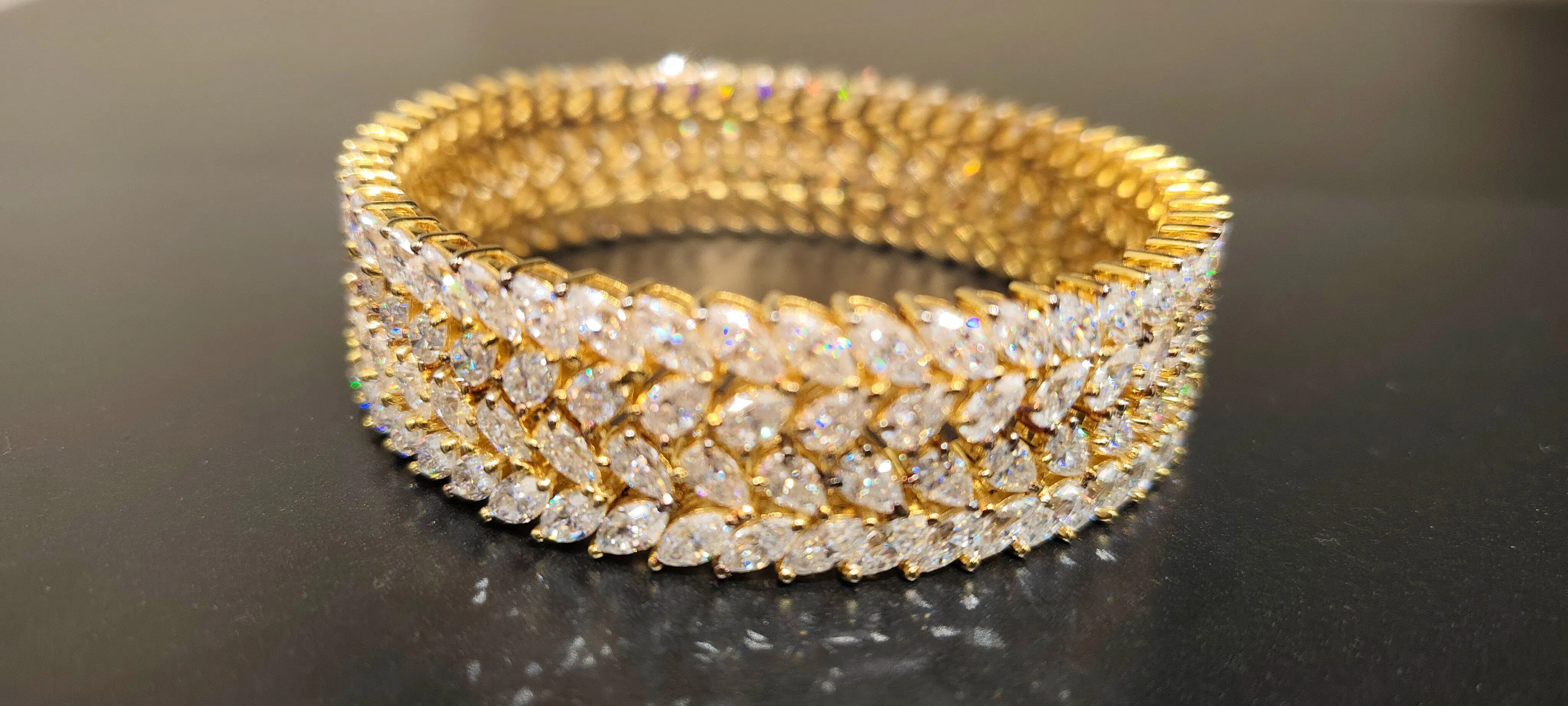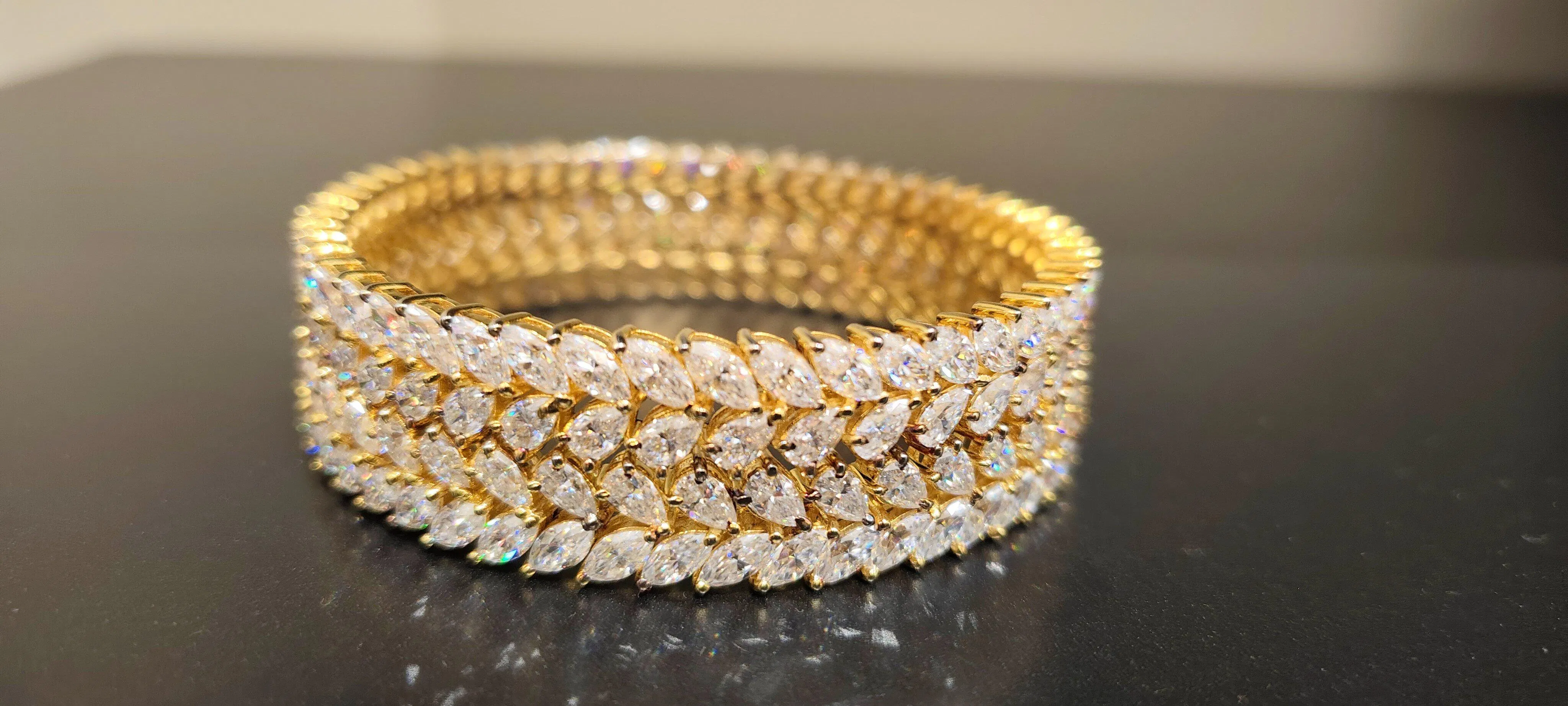 Pear and Marquise Cut Moissanite Diamond 18K Gold Bangle