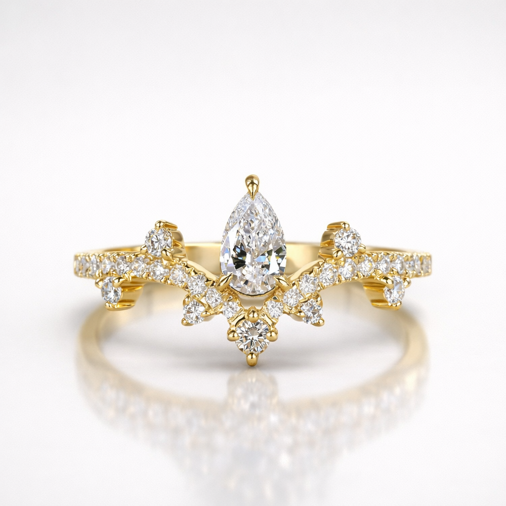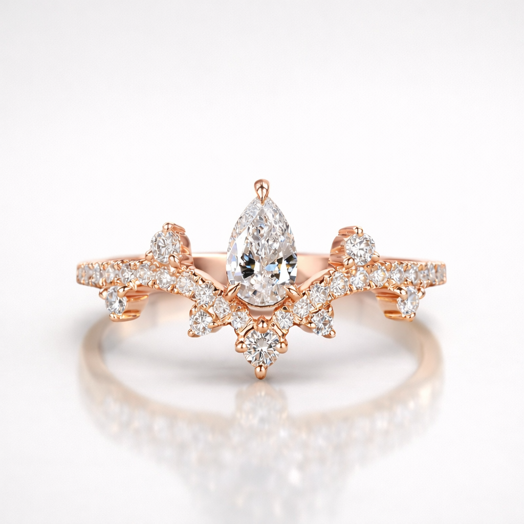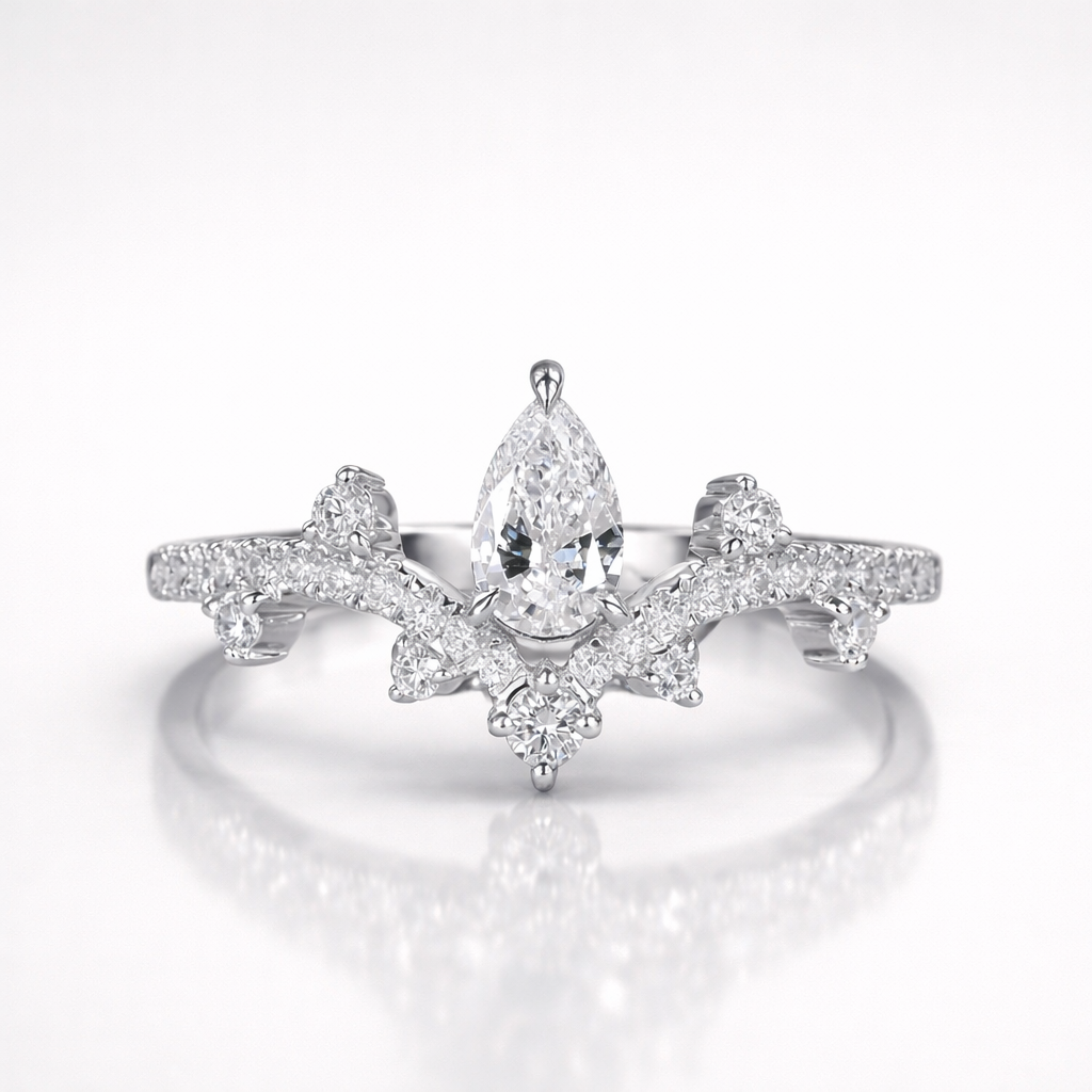 Pear and Round Cut Moissanite Diamond Wedding Sterling Silver Band Ring