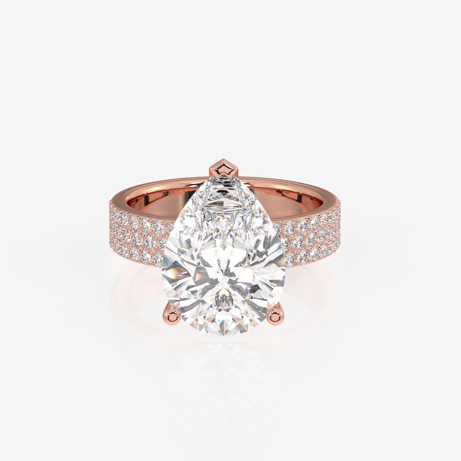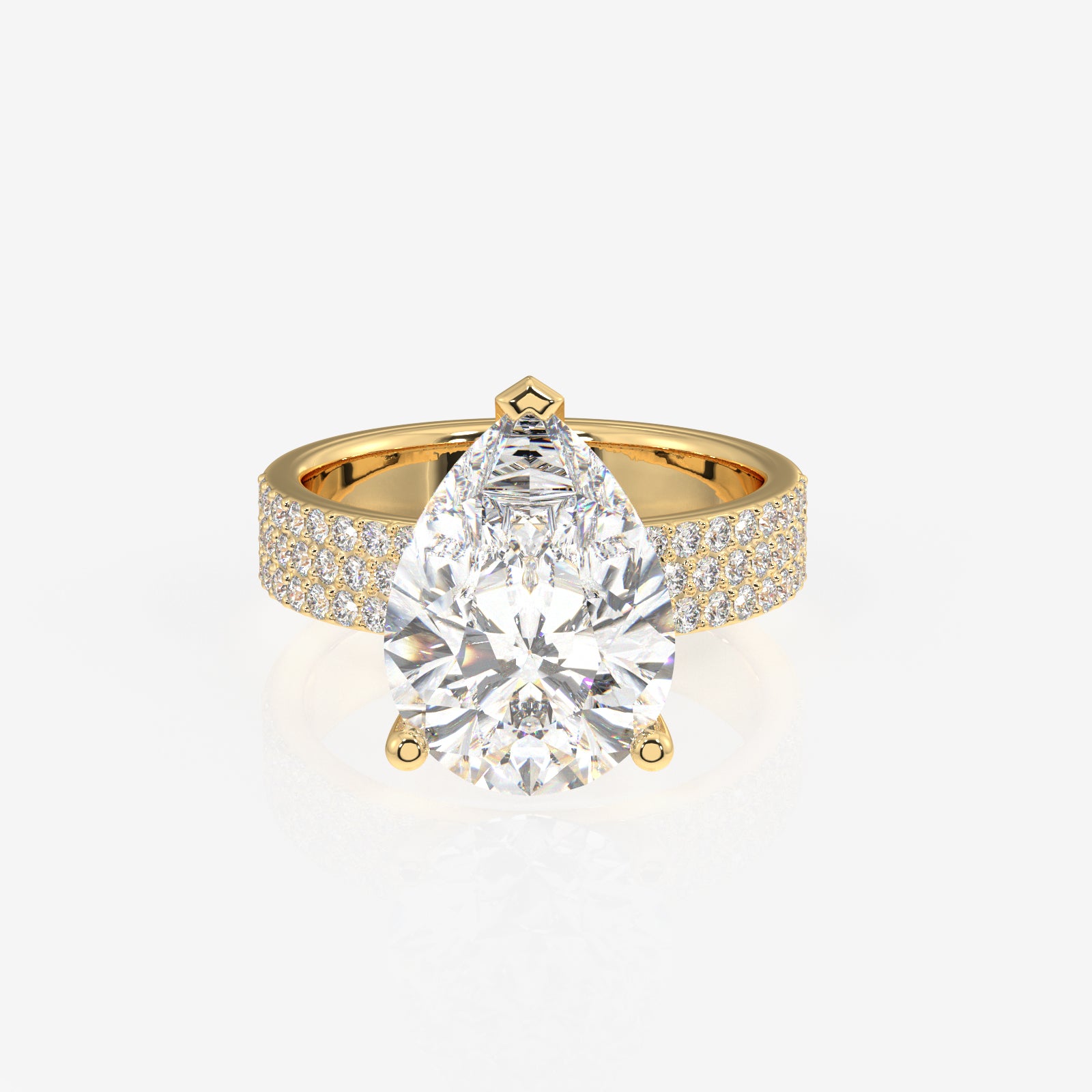 Pear Cut Lab Grown Diamond Three Layer Pave 14K Gold Ring