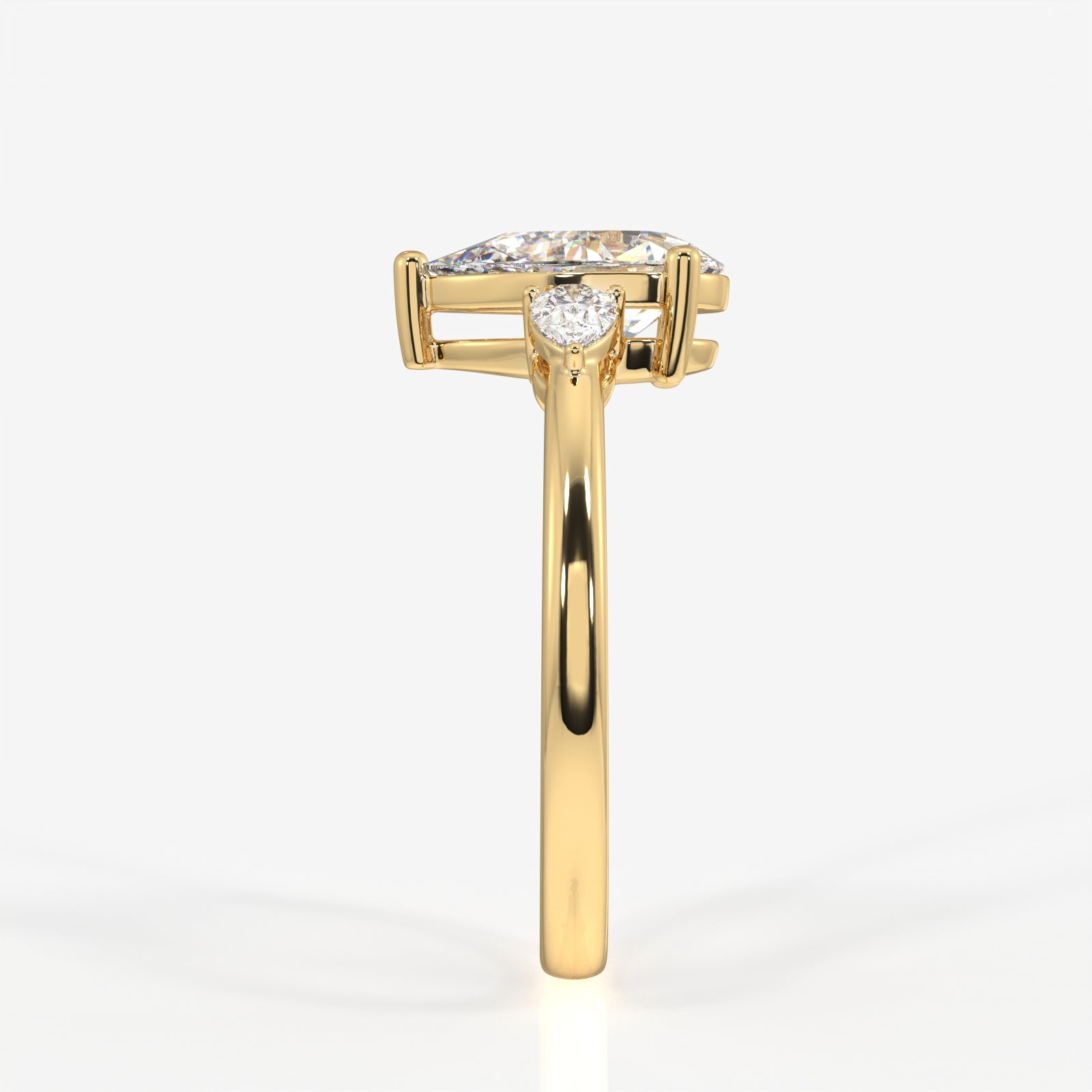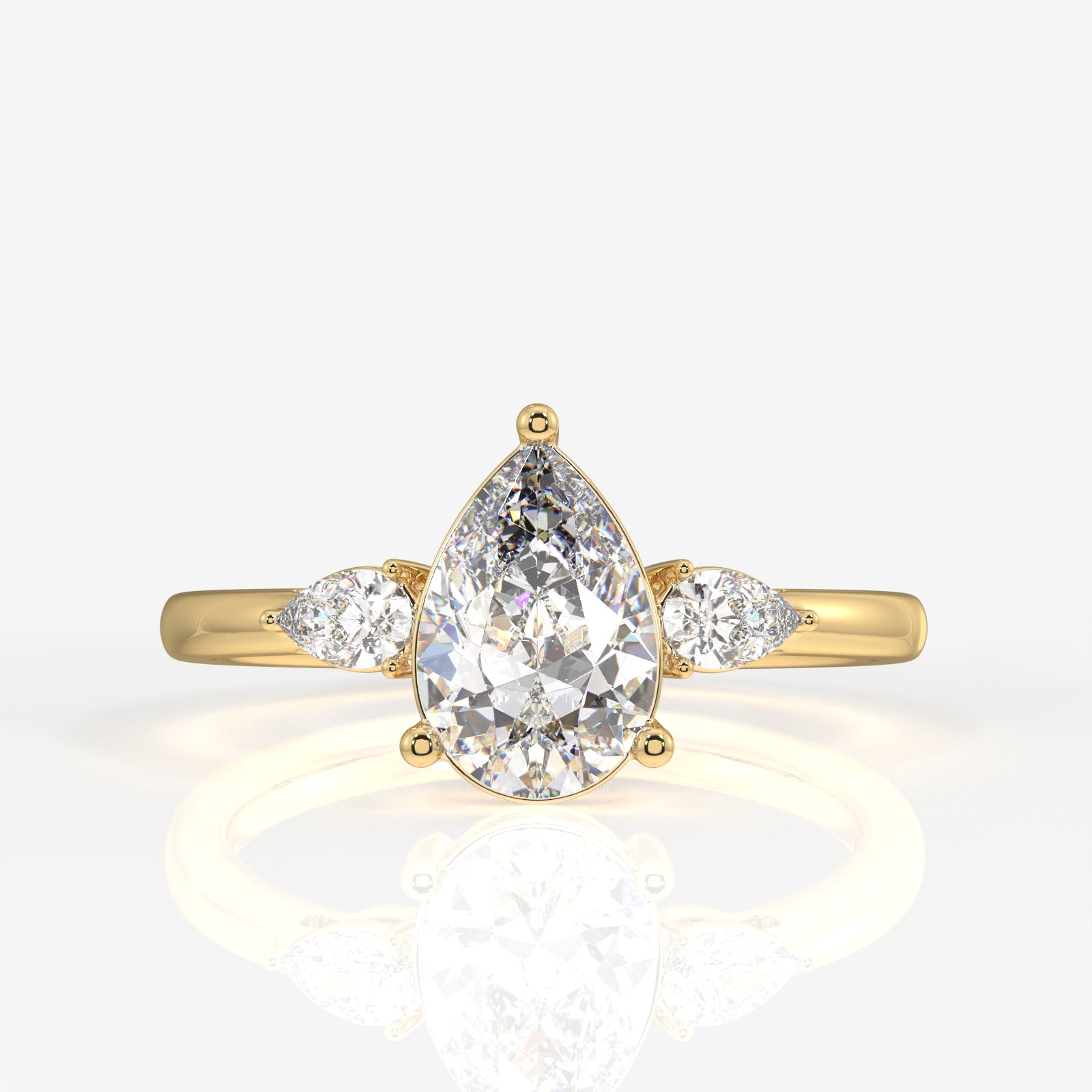 Pear Cut Lab Grown Diamond Three Stone 14k Gold Ring