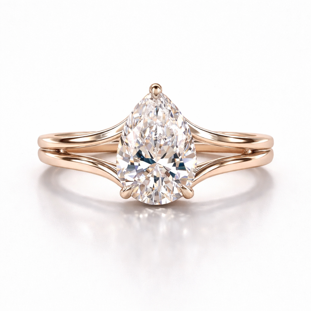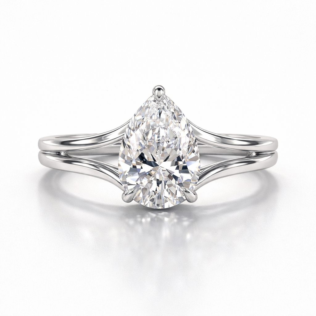 Pear Cut Moissanite Diamond Solitaire Hidden Halo Sterling Silver Ring