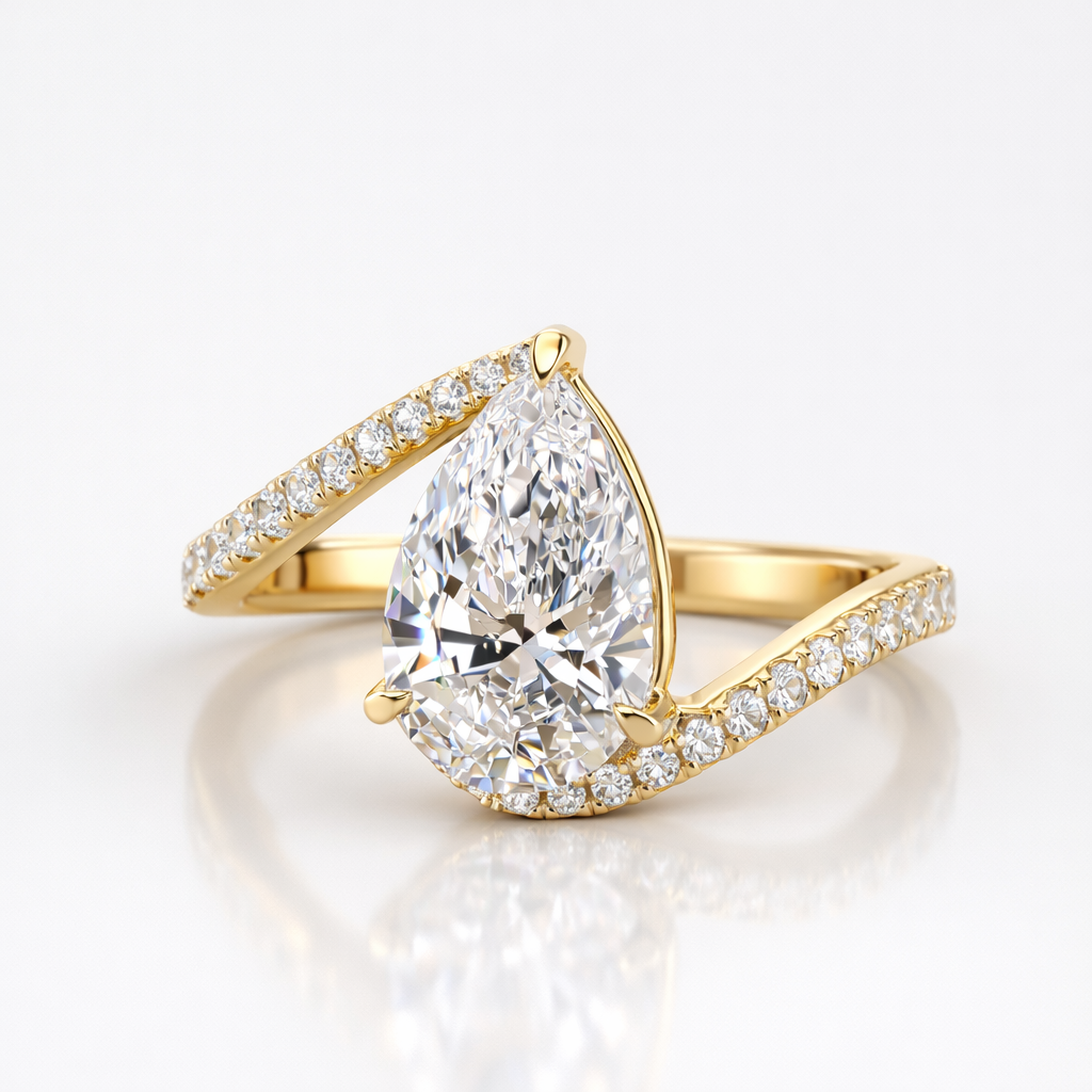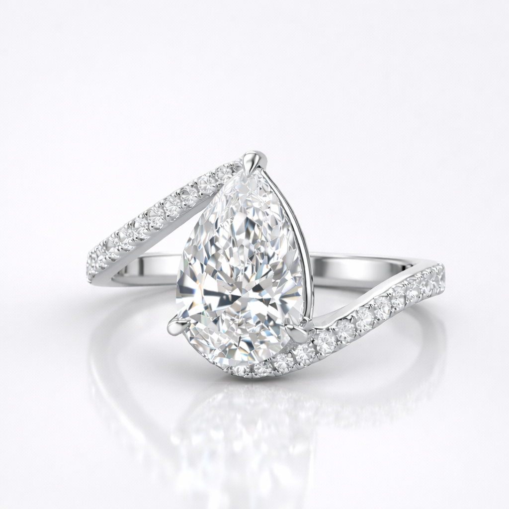 Pear Cut Moissanite Diamond Twisted Engagement Sterling Silver Ring