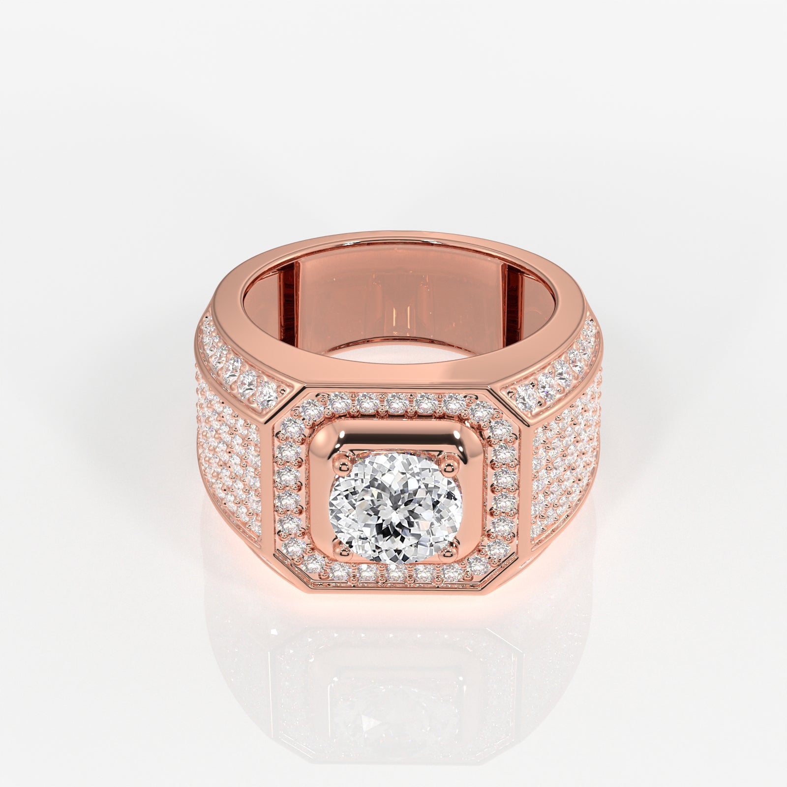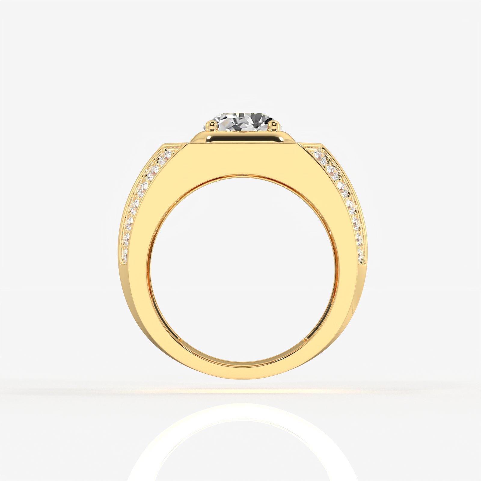 Portuguese Cut Lab Grown Diamond Men's 14K Yellow Gold Ring