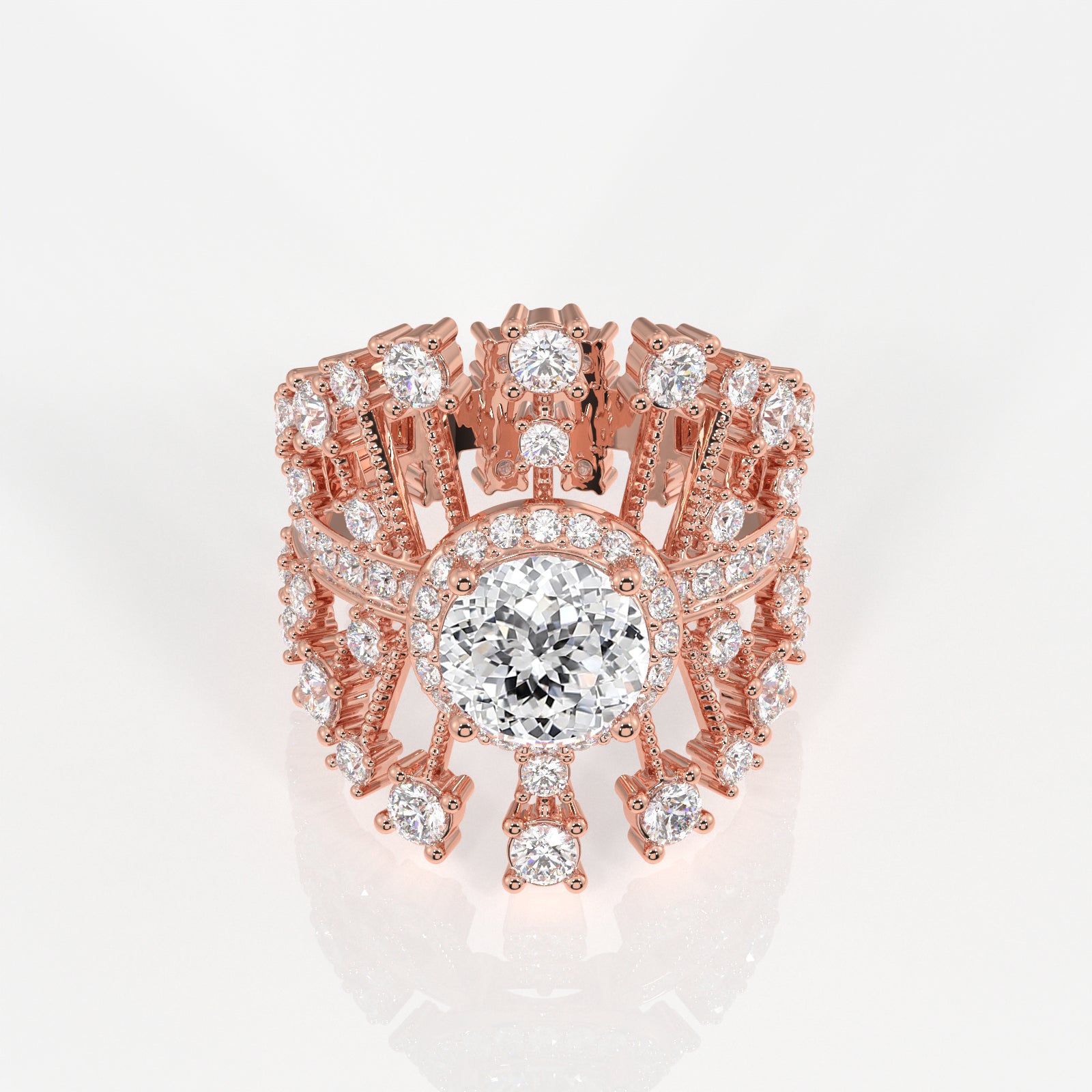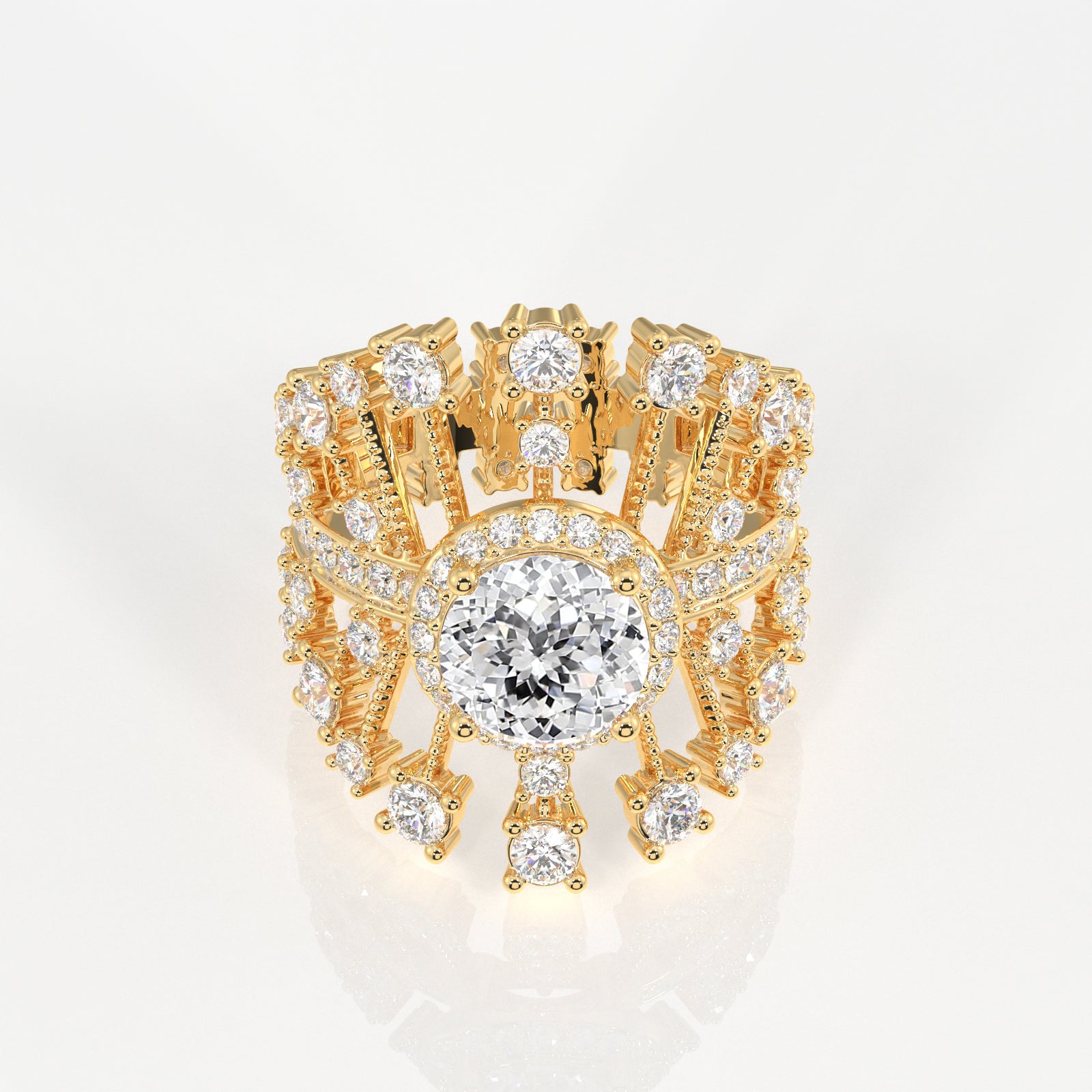 Portuguese  Cut Moissanite Diamond Cocktail Sterling Silver Ring