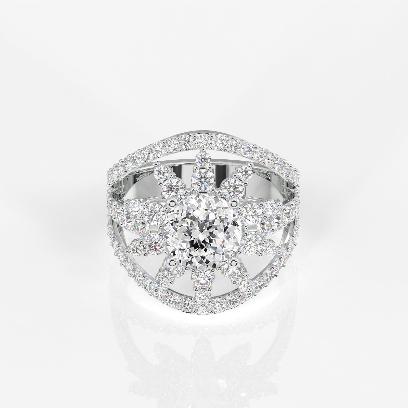 Portuguese Cut Moissanite Diamond Cocktail Sterling Silver Ring