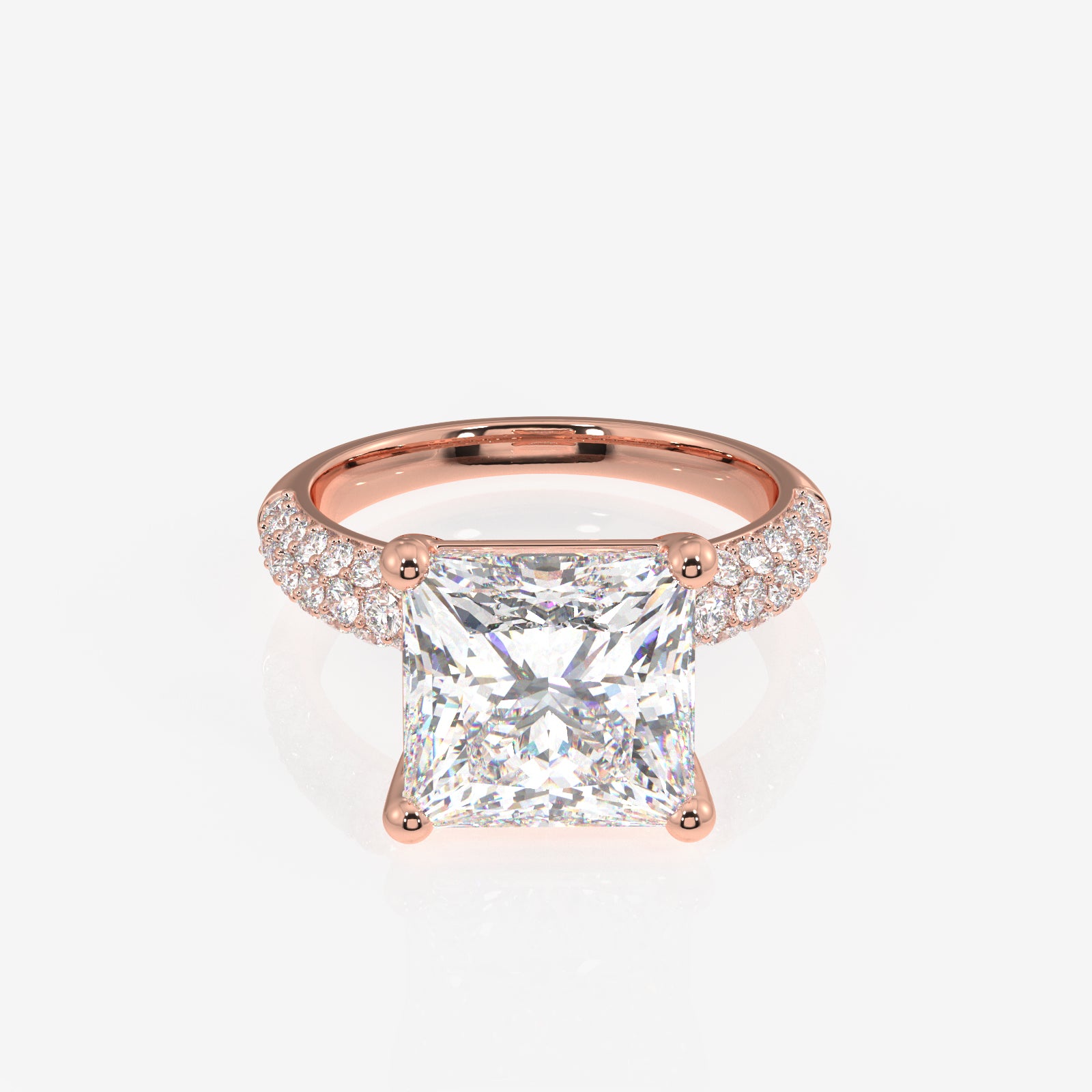 Princess Cut Lab Grown Diamond Three Layer Pave 14K Gold Ring