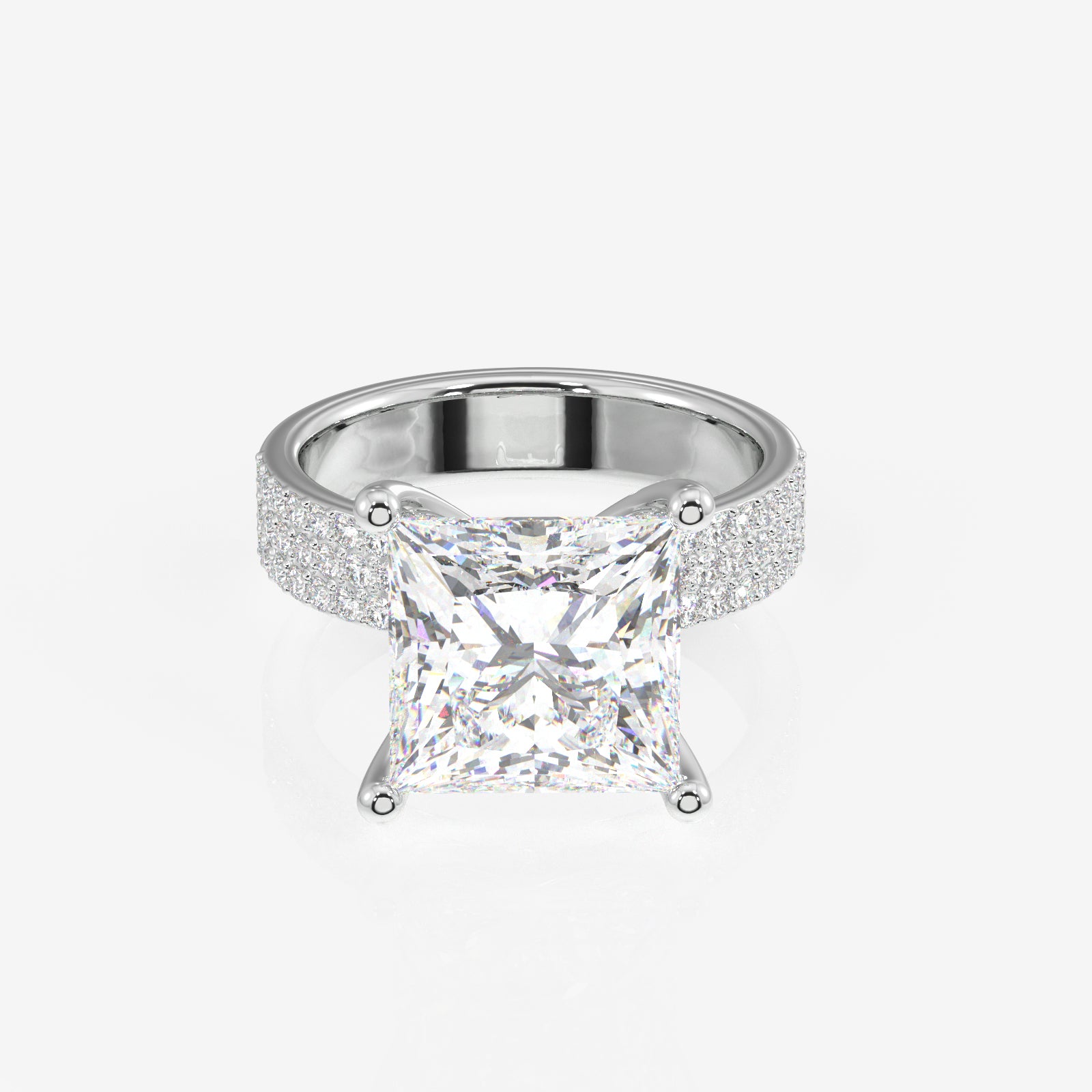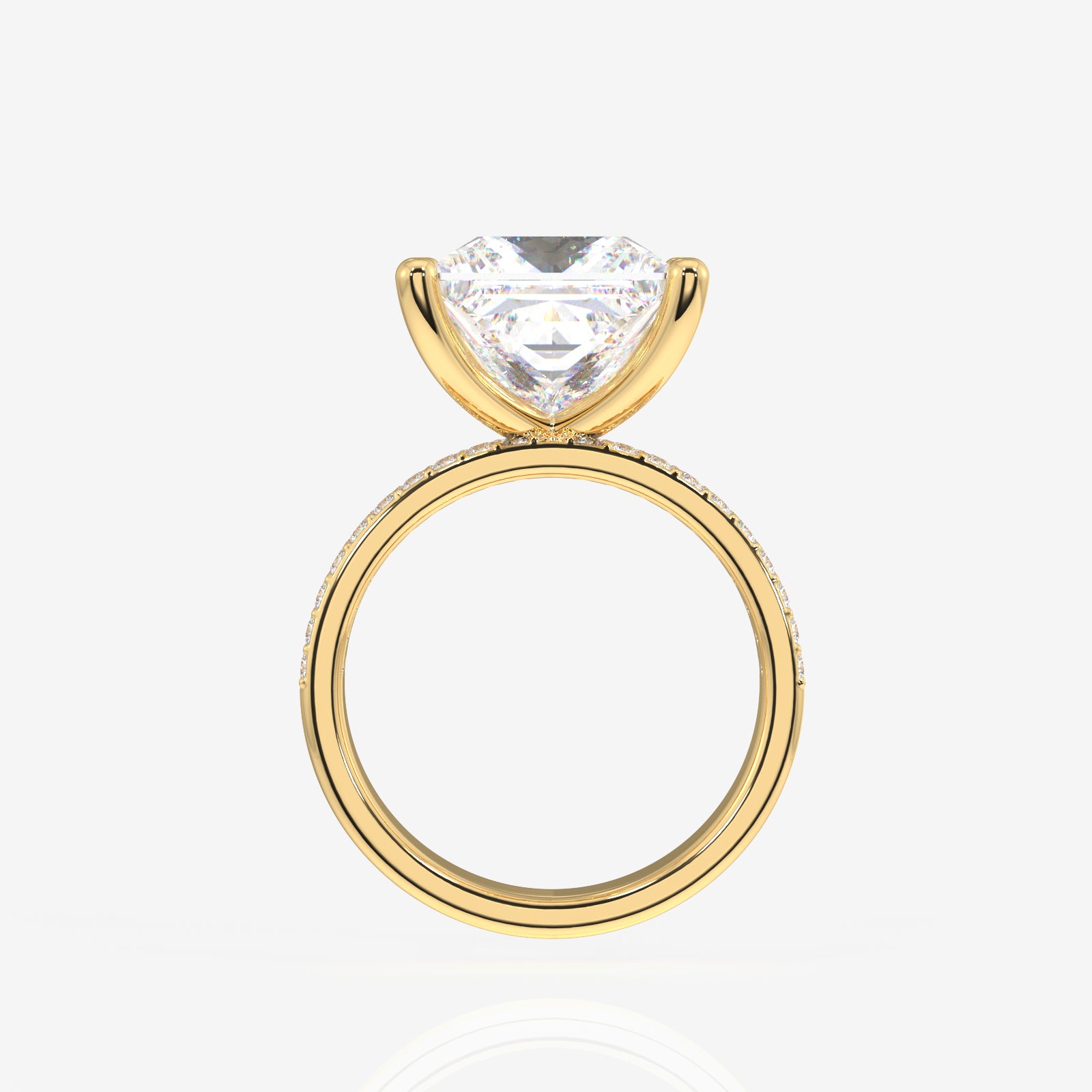 Princess Cut Lab Grown Diamond Three Layer Pave 14K Gold Ring