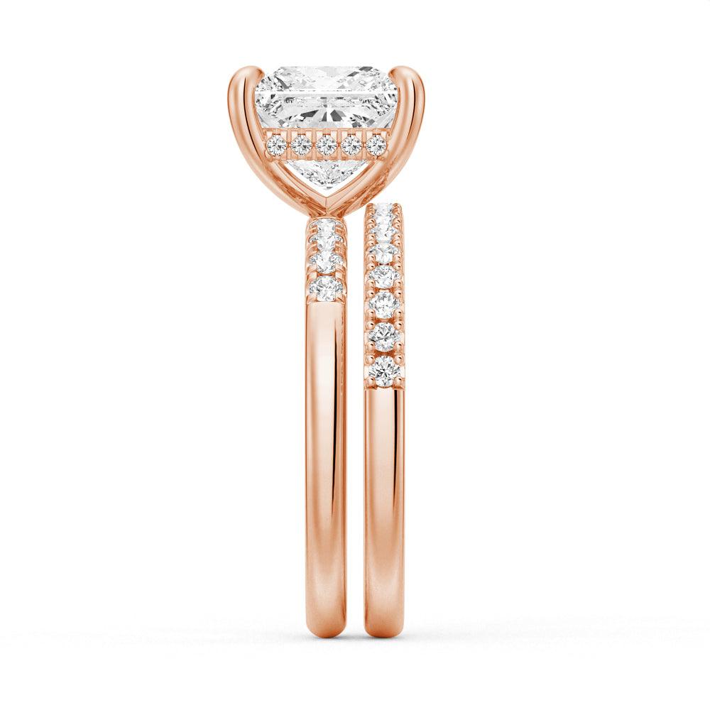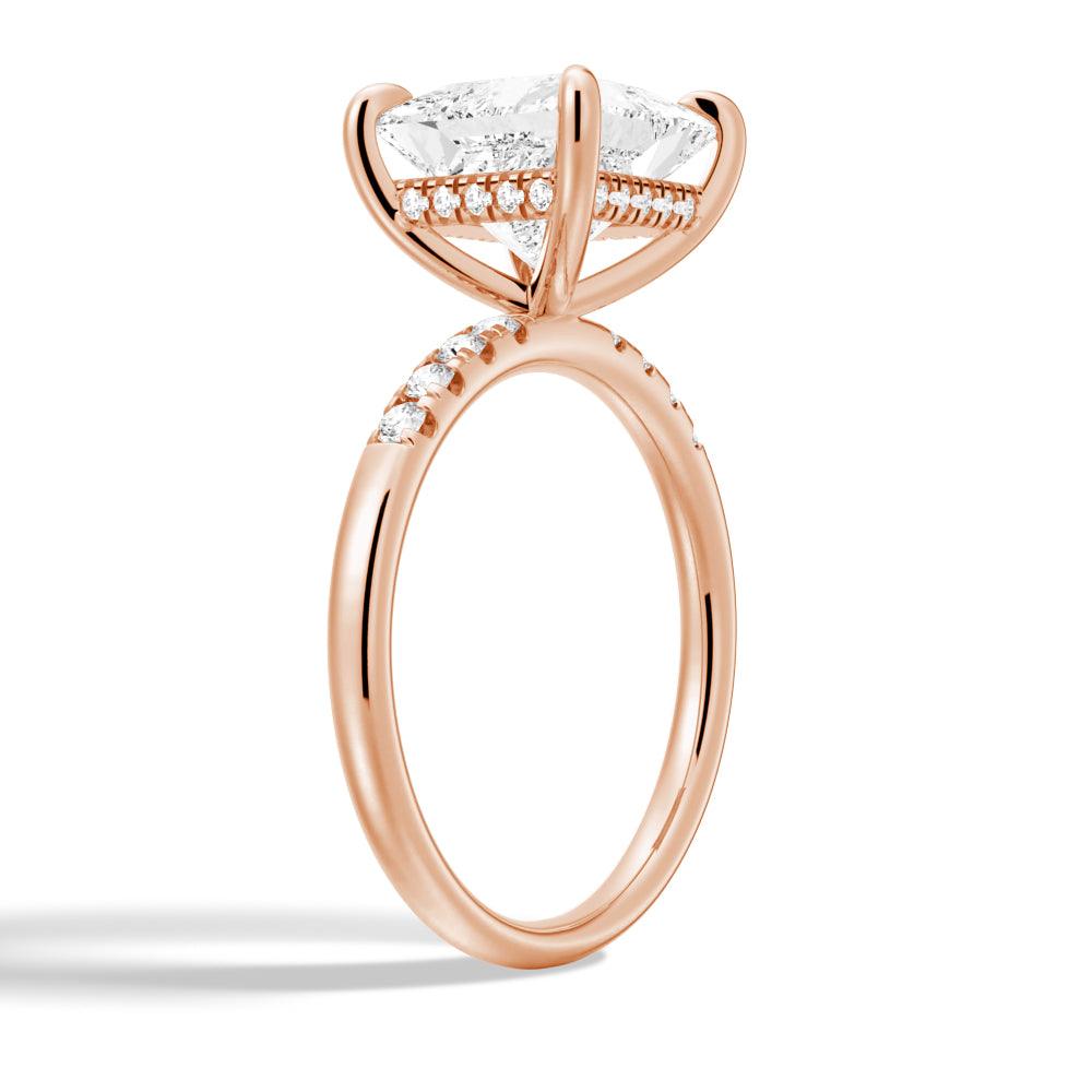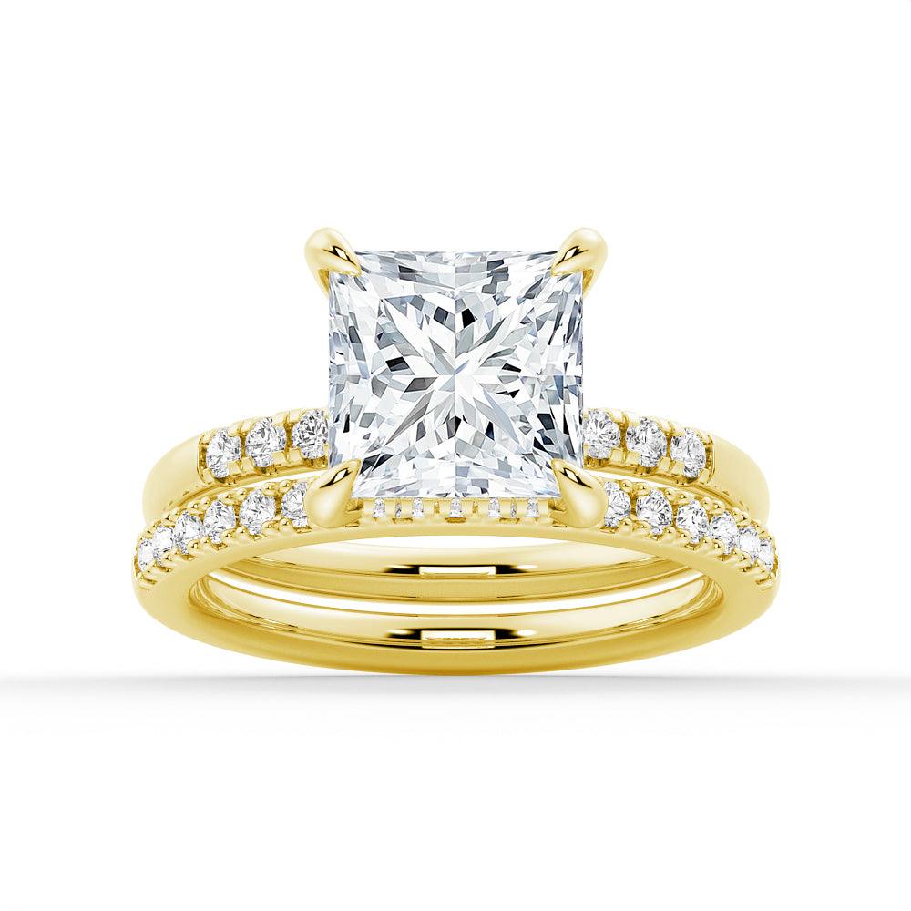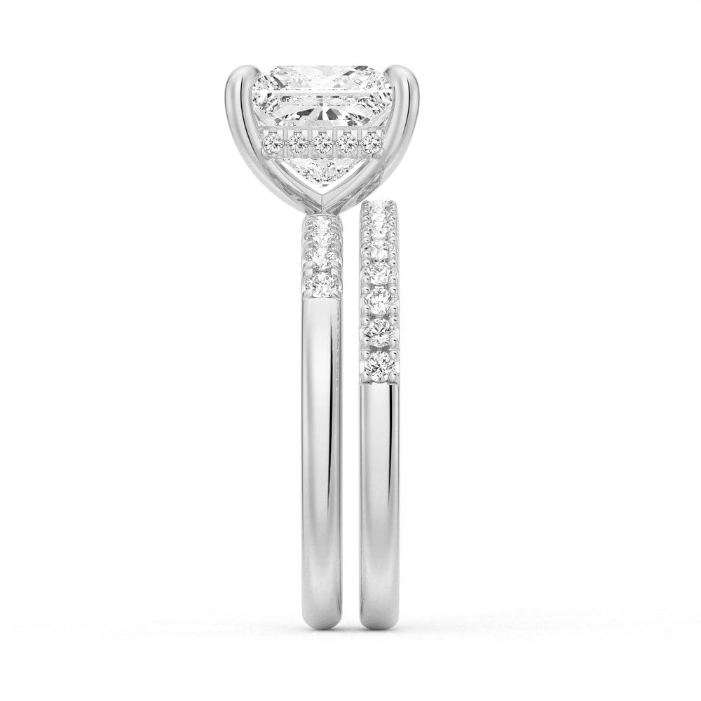 Princess Cut Moissanite Diamond Hidden Halo Engagement Sterling Silver Ring