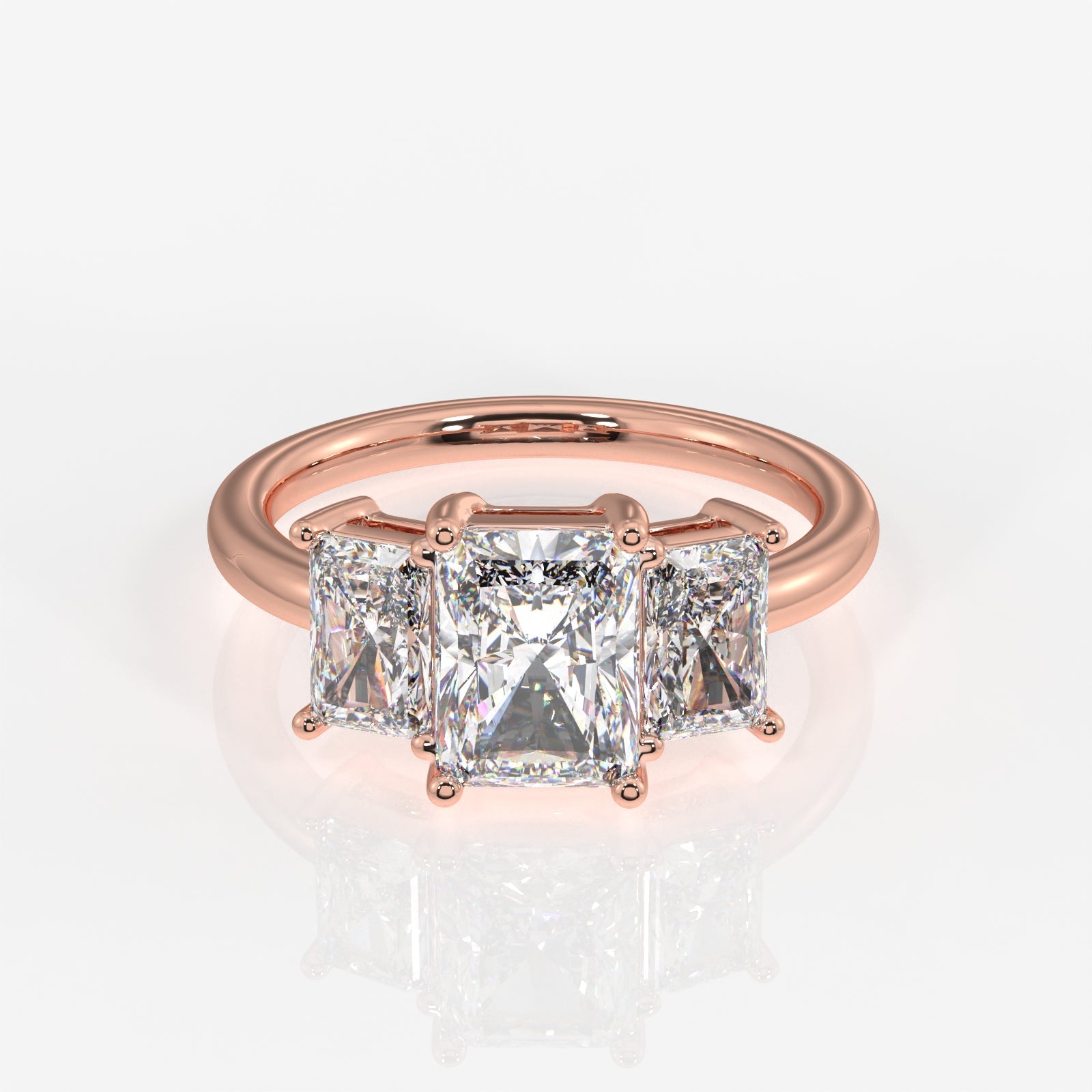 Radiant Cut Moissanite Diamond Three Stone Sterling Silver Ring