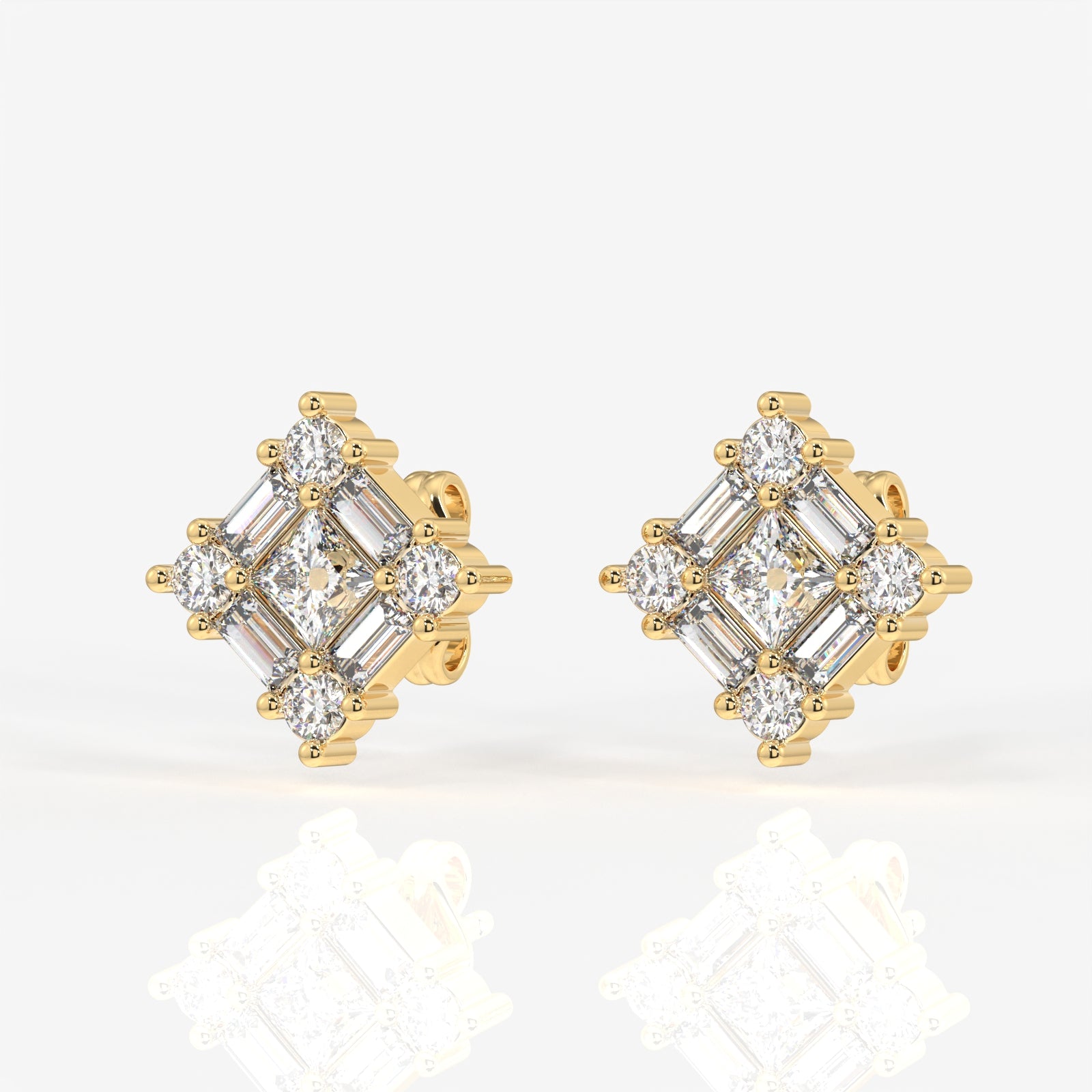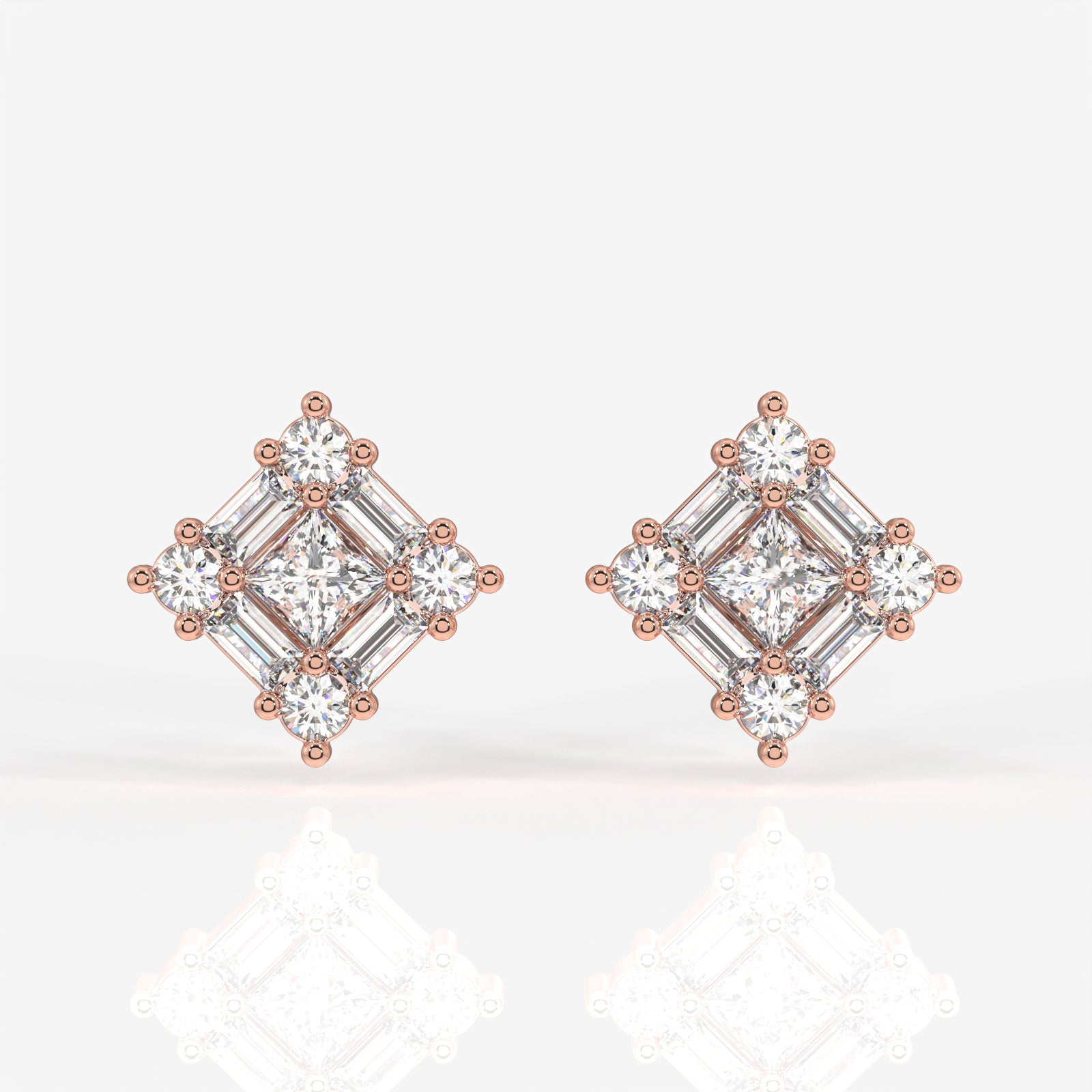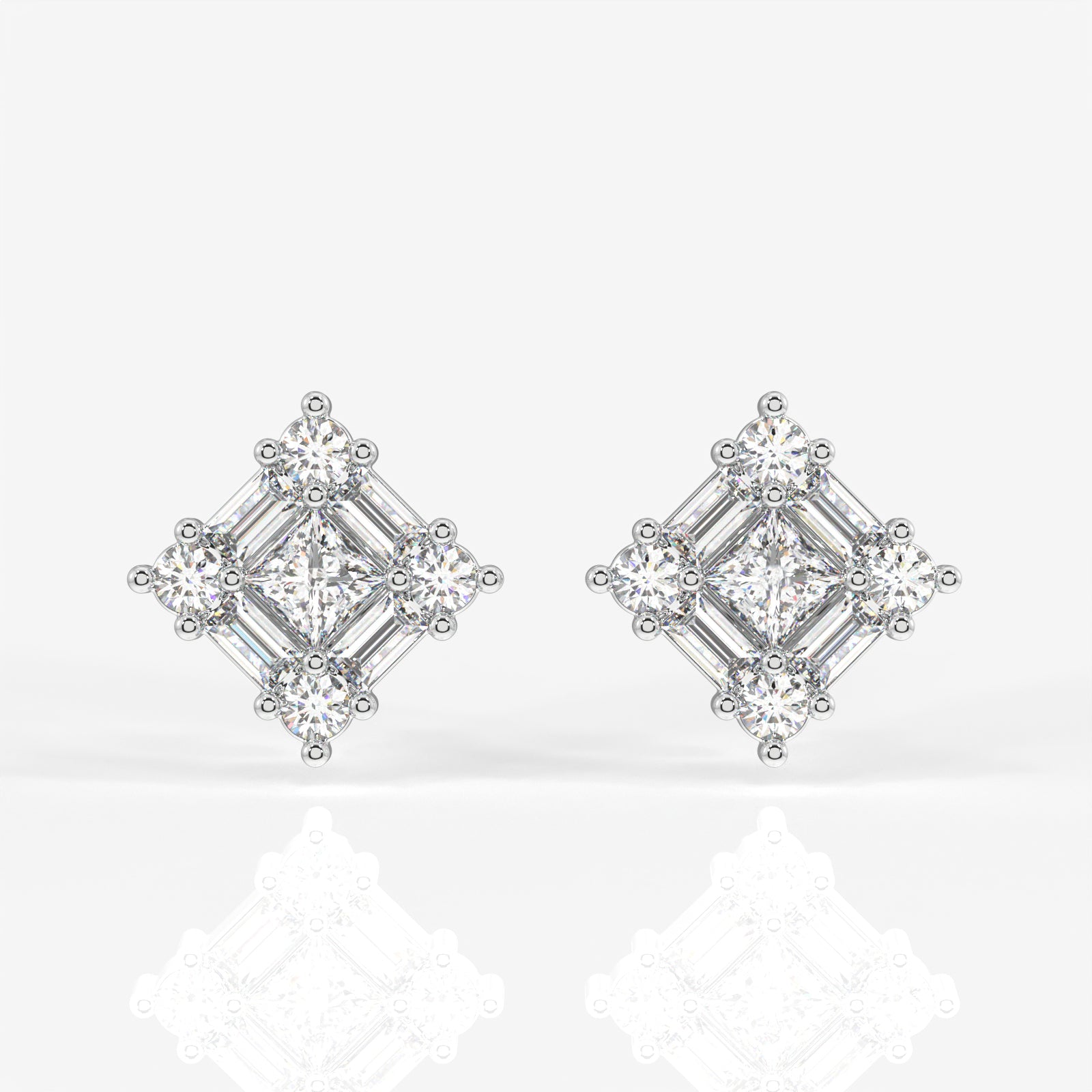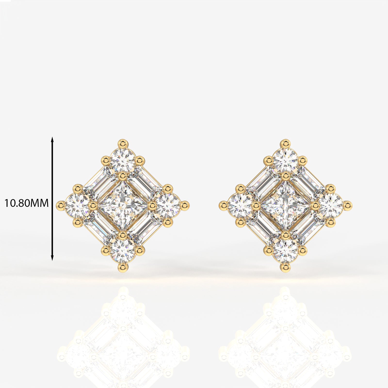Round and Baguette Cut Moissanite Diamond Stud Sterling Silver Earrings