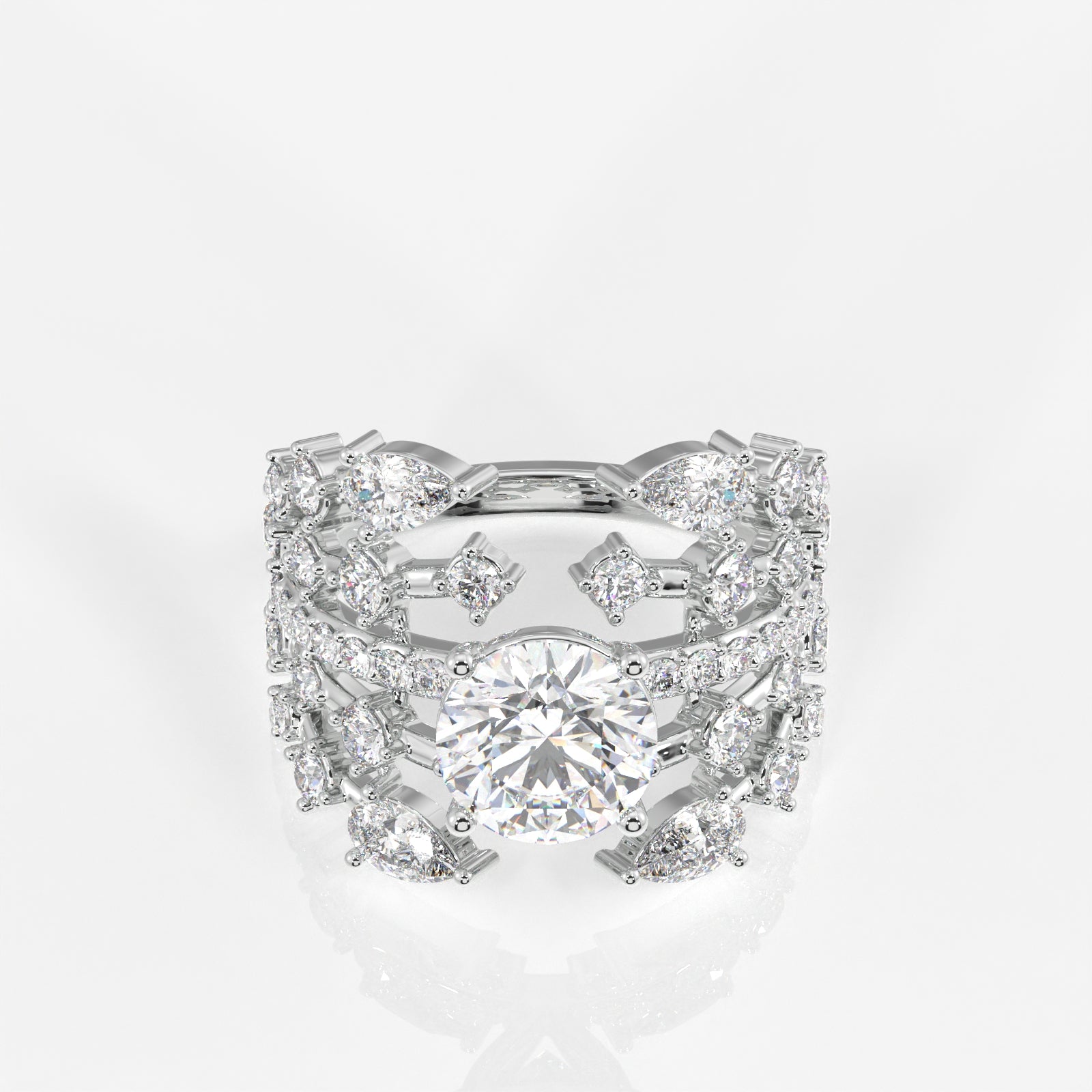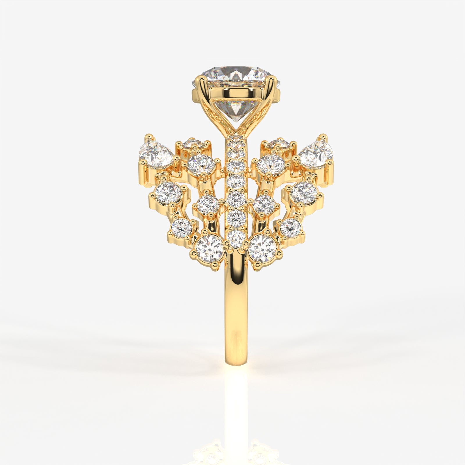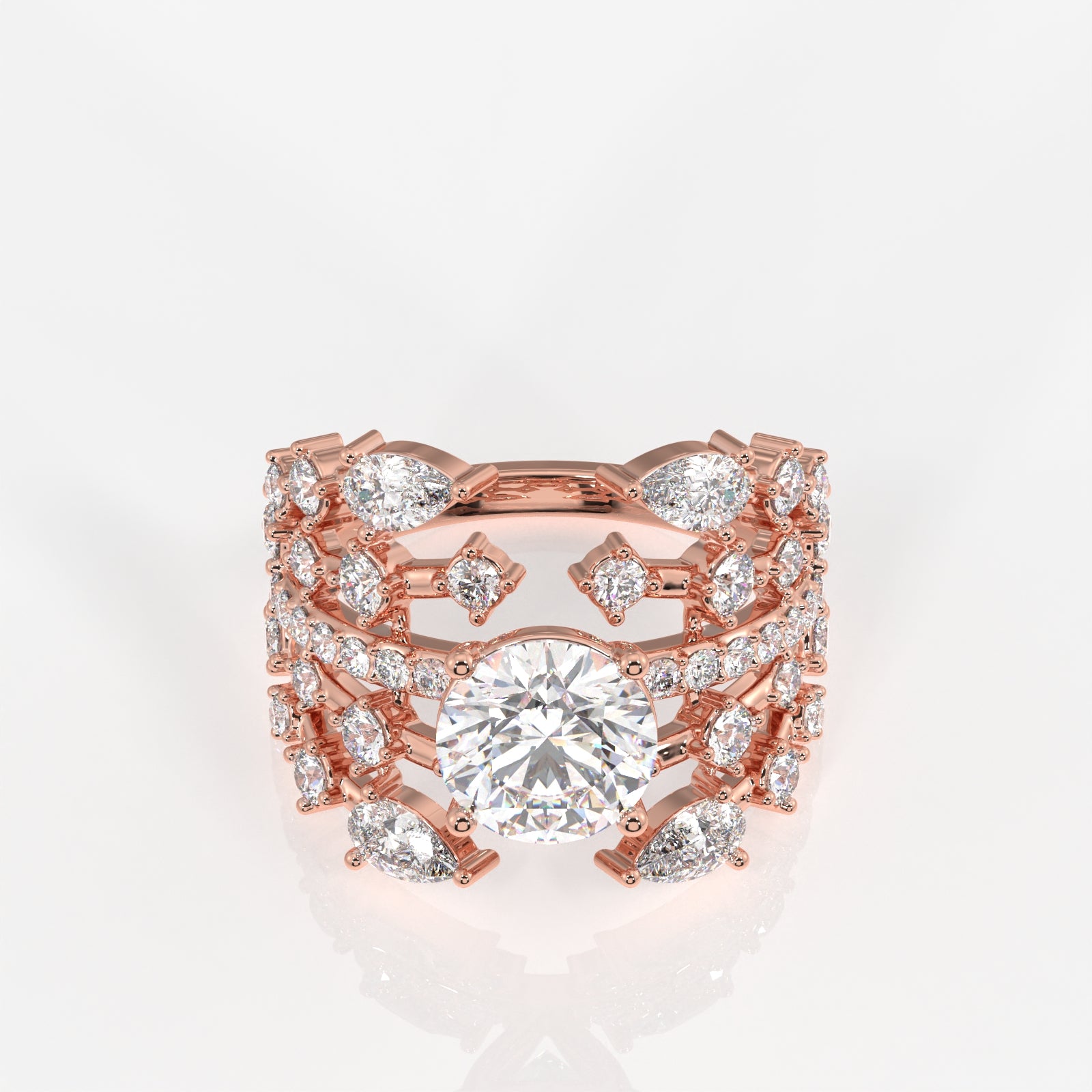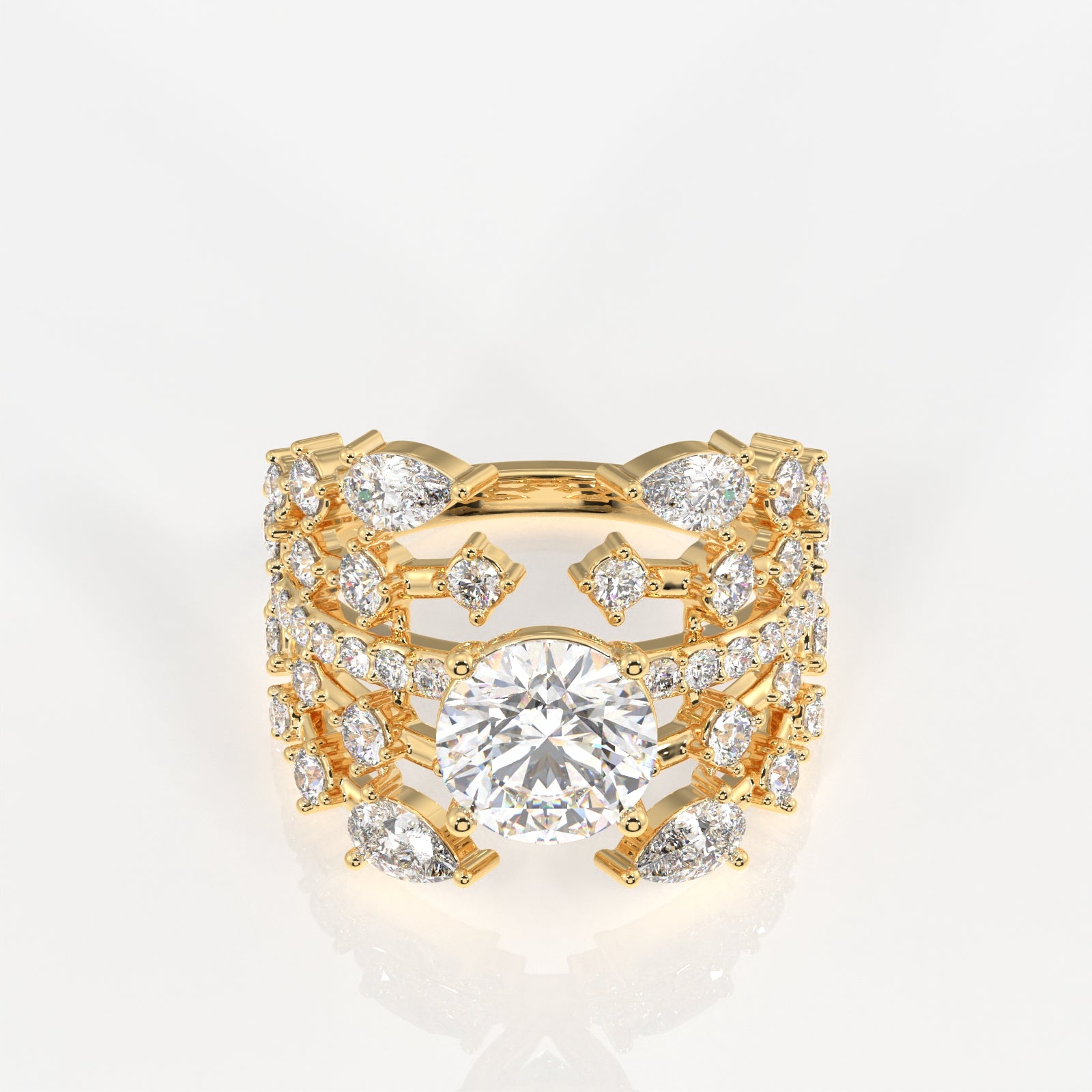 Round and Pear Cut Lab Grown Diamond Cocktail 14K Gold Ring