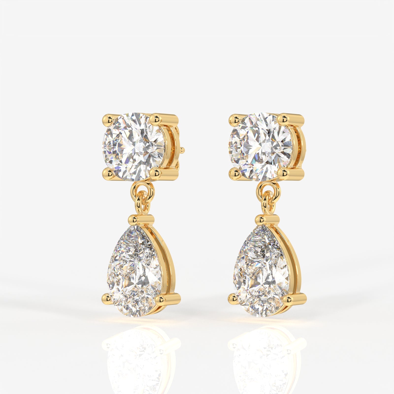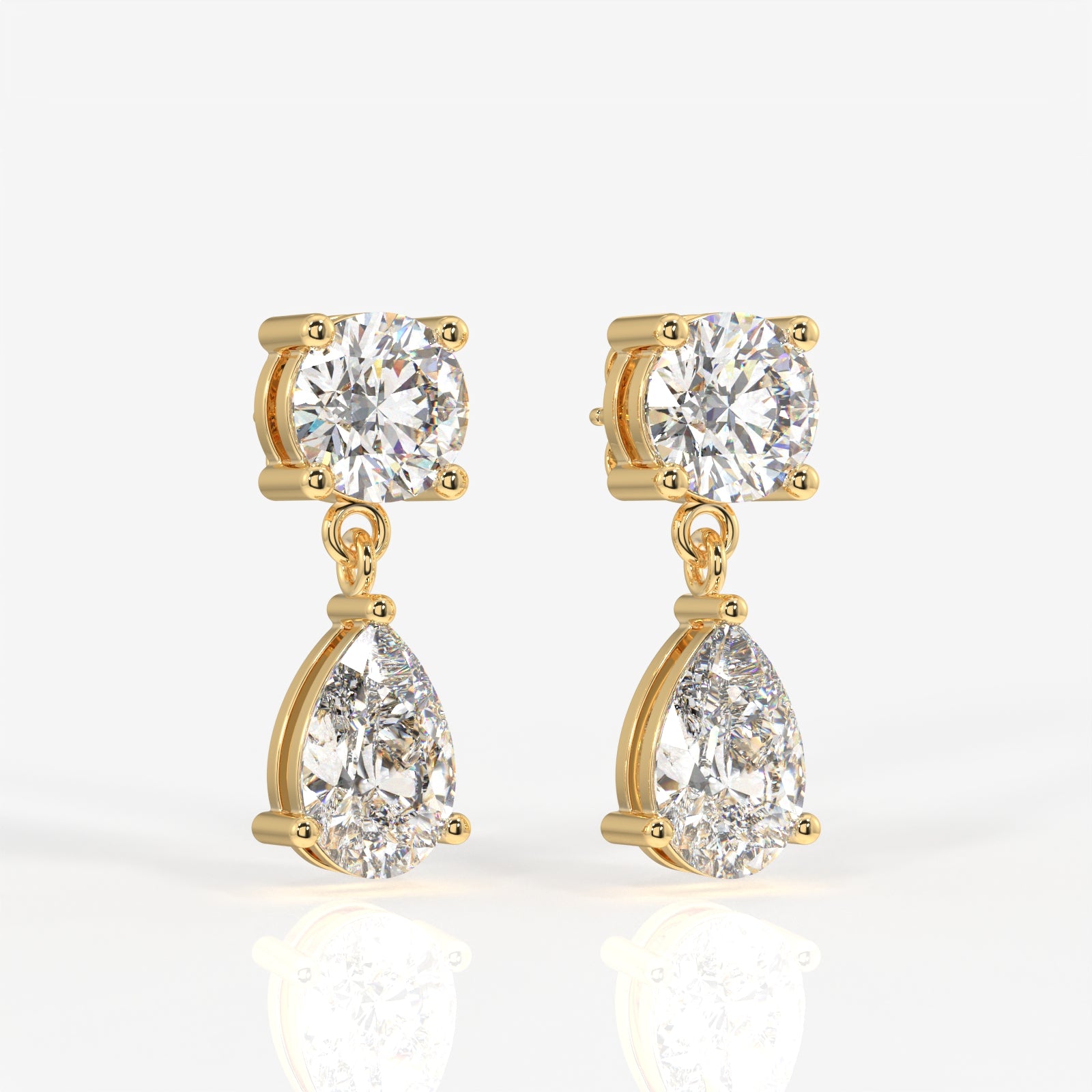 Round and Pear Cut Lab Grown Diamond Dangle 14k Gold Earrings