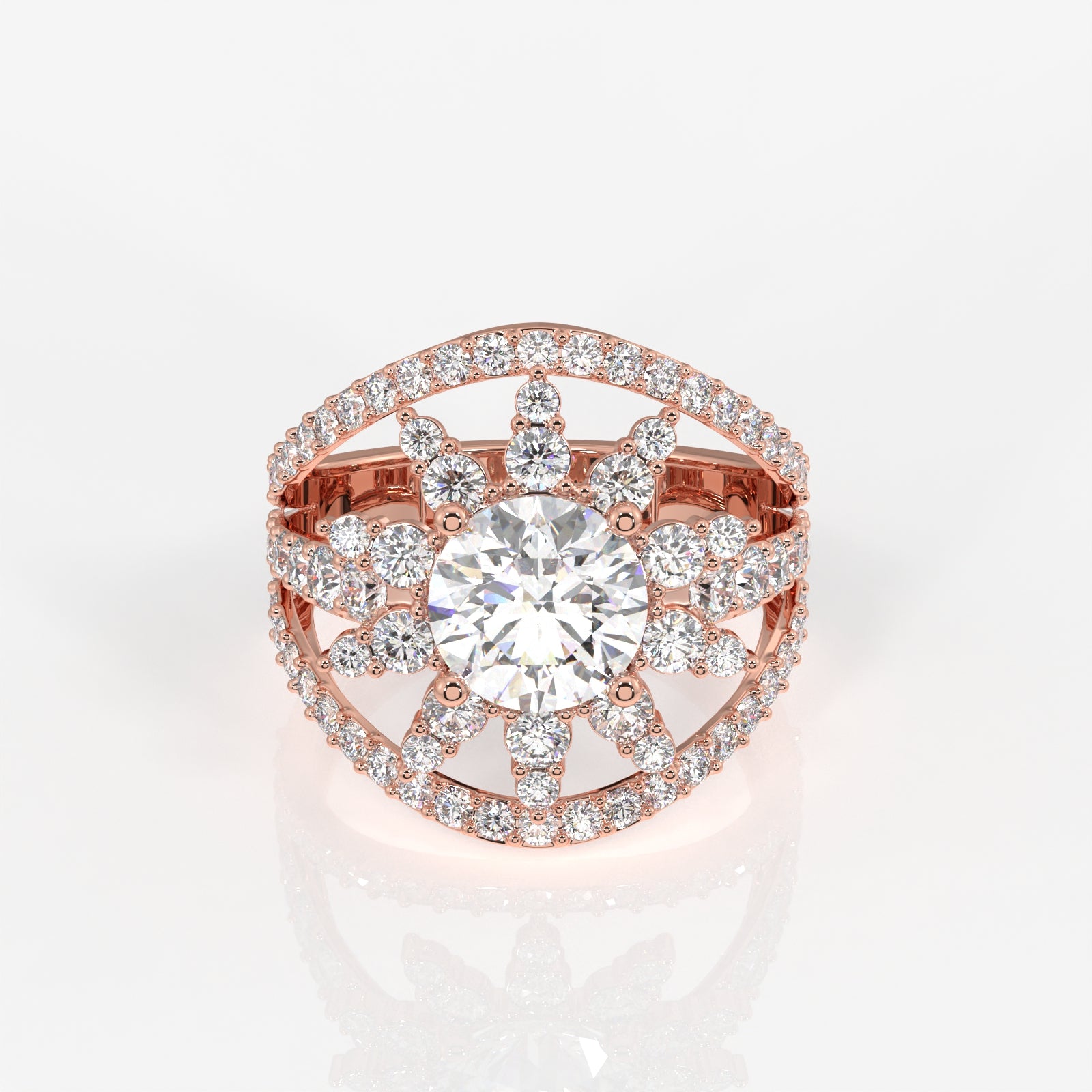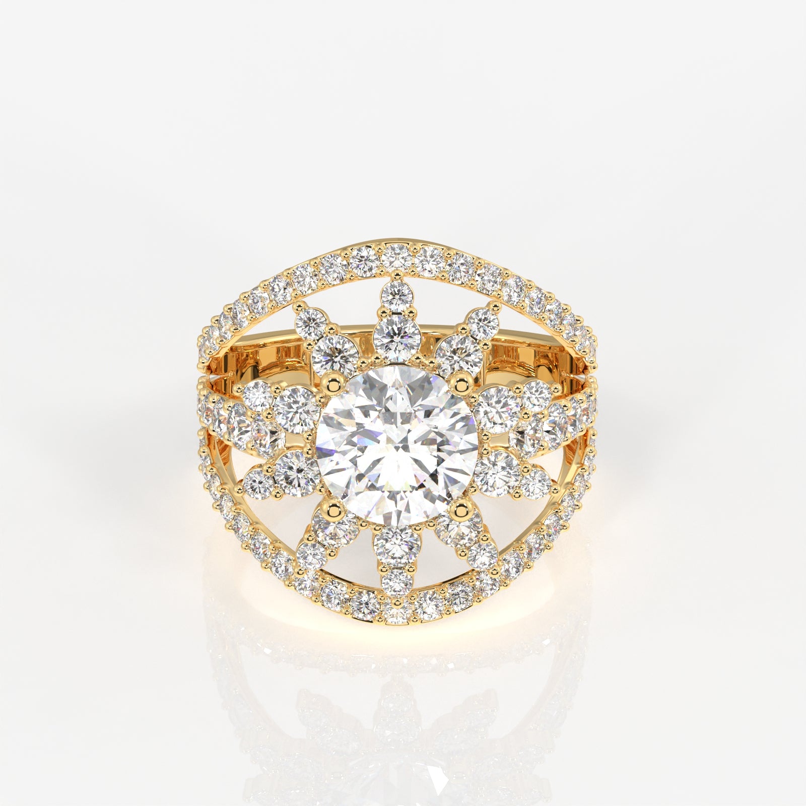 Round Cut Lab Grown Diamond Cocktail 14K Gold Ring