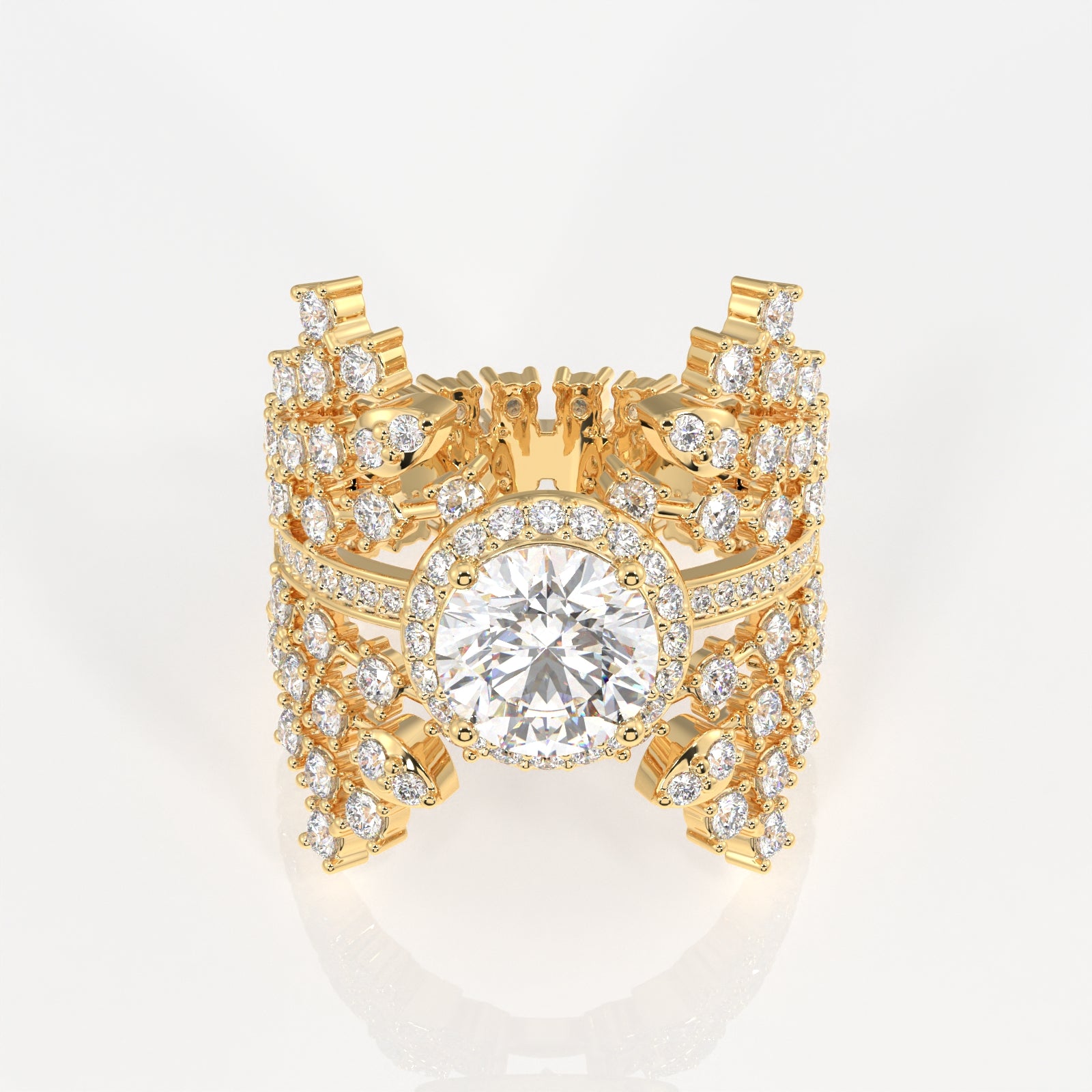 Round Cut Lab Grown Diamond Cocktail 14K Gold Ring