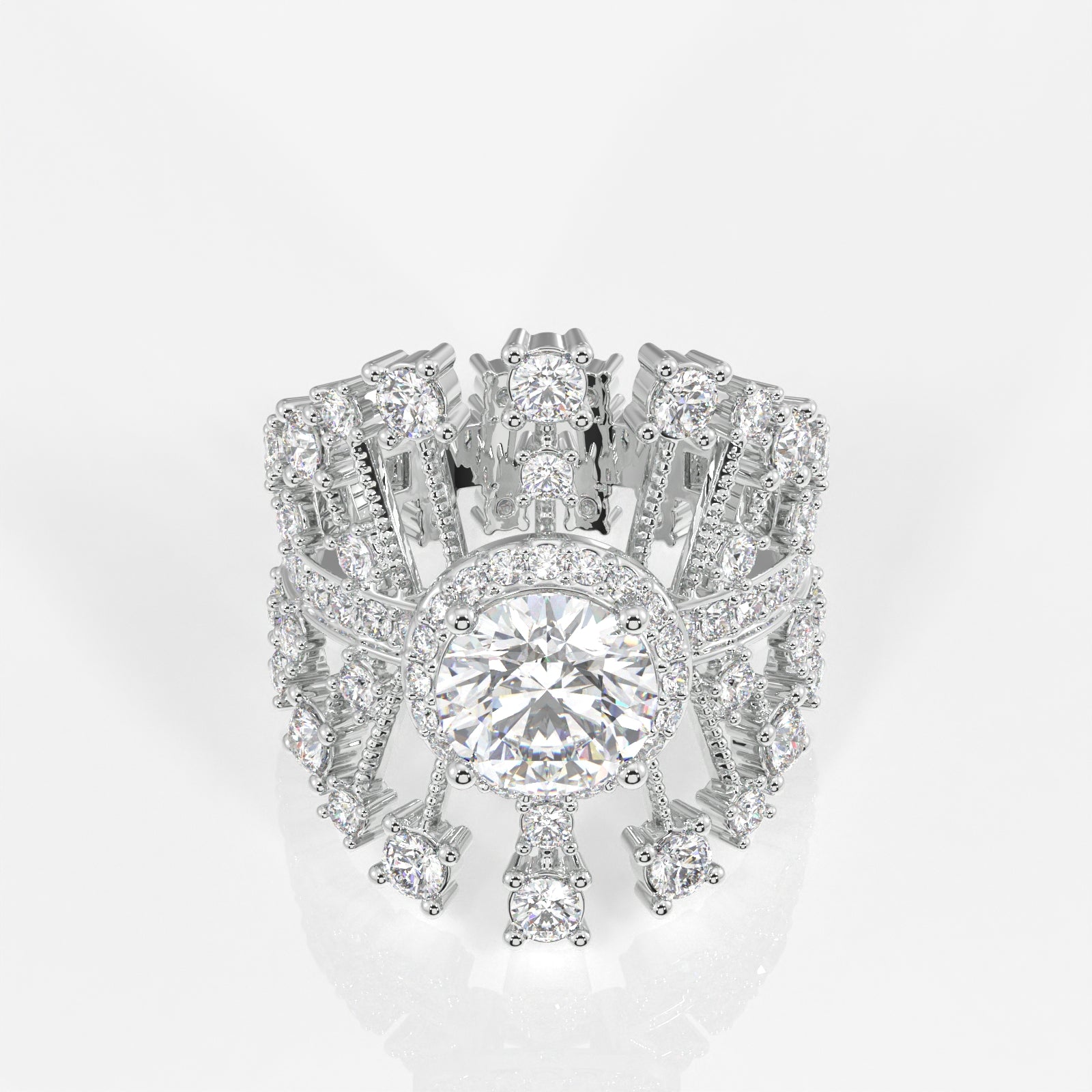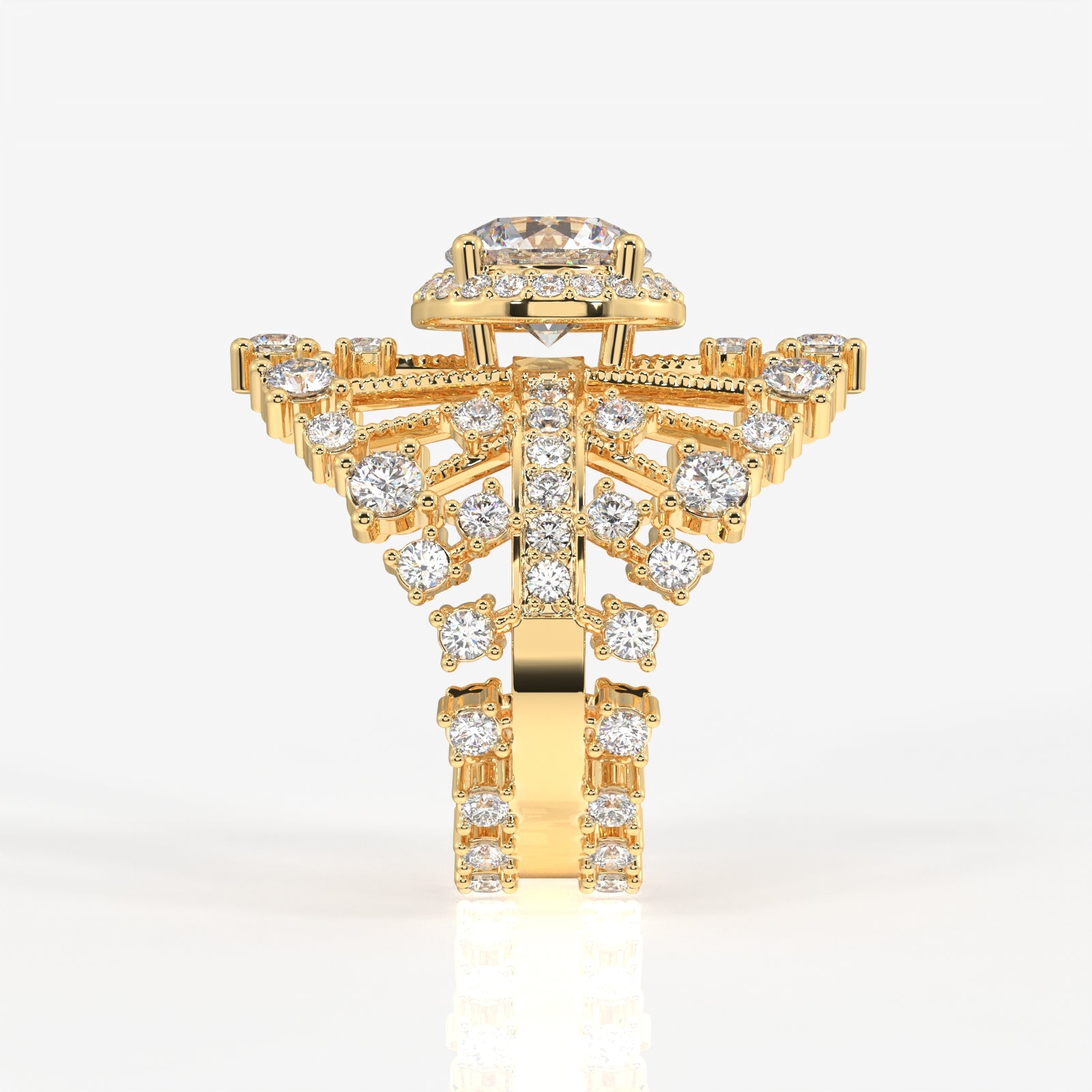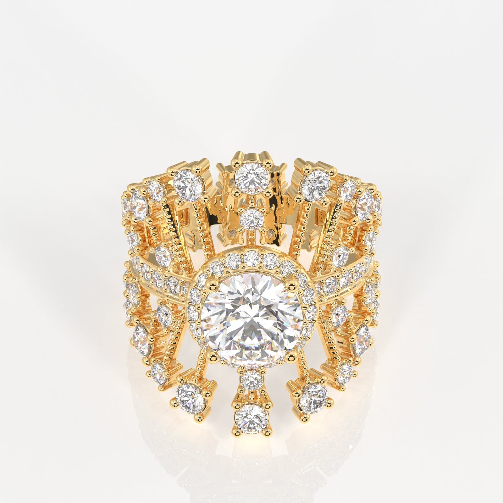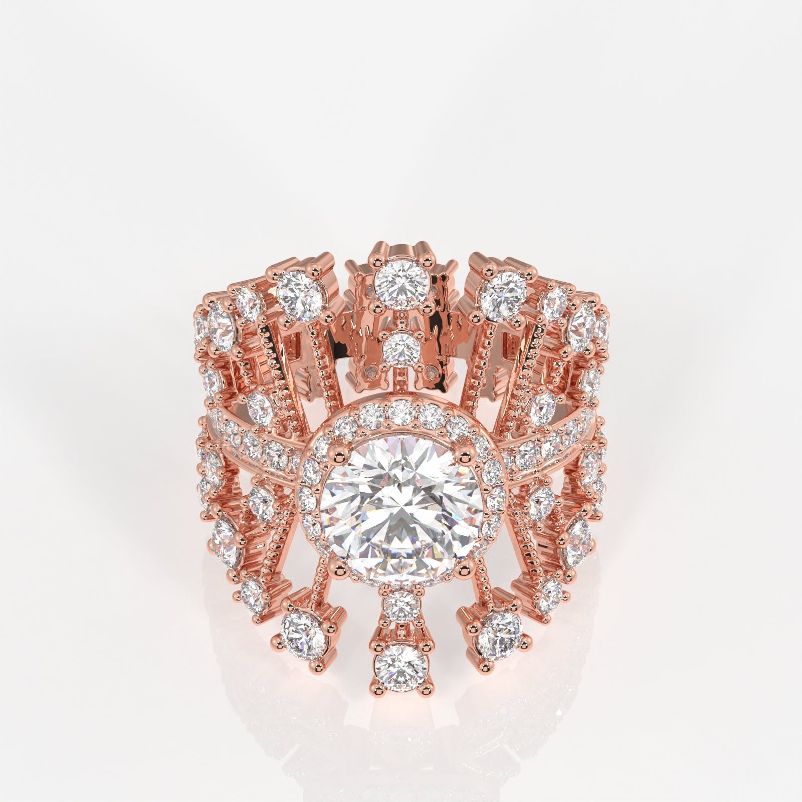Round Cut Lab Grown Diamond Cocktail 14K Gold Ring