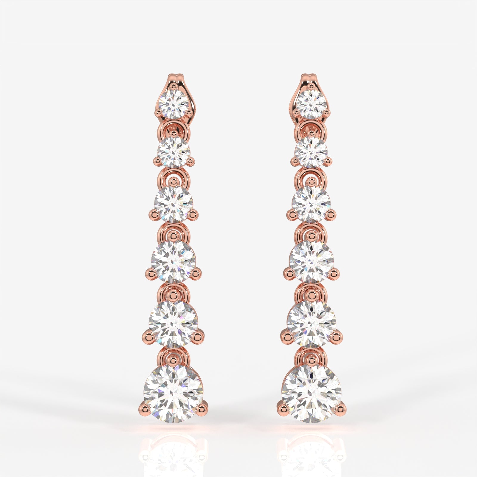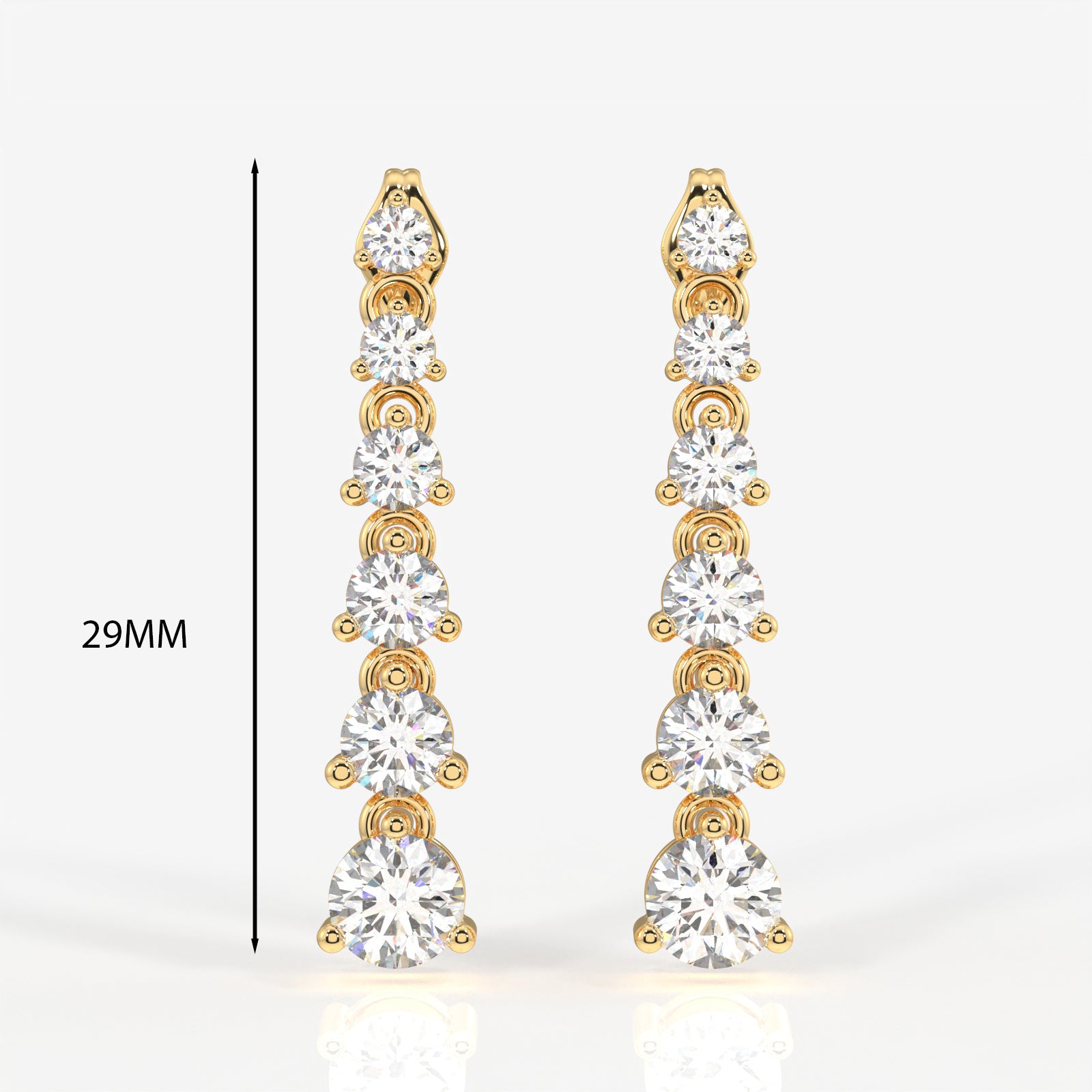 Round Cut Lab Grown Diamond Dangle 14K Gold Earrings