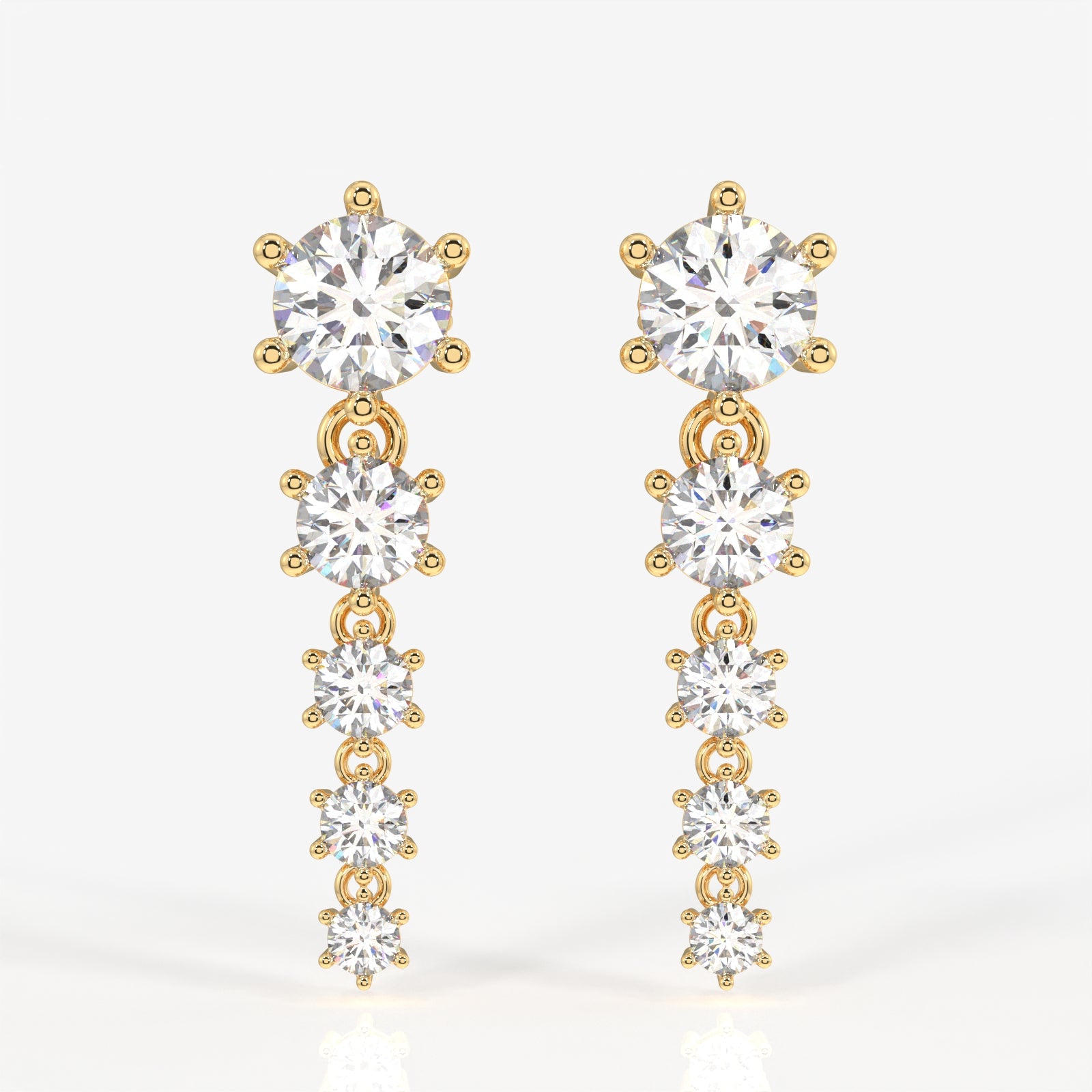 Round Cut Lab Grown Diamond Dangle 14K Gold Earrings