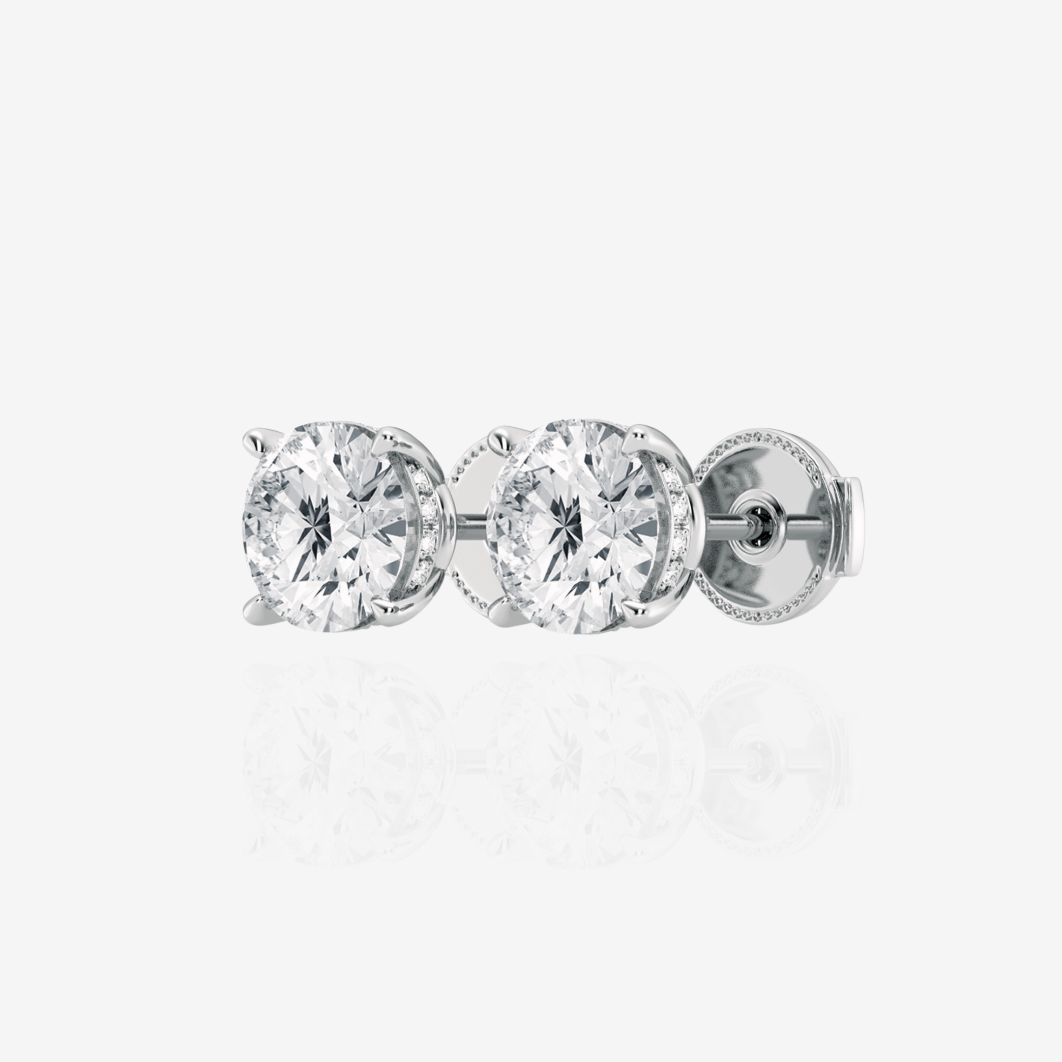 Round Cut Moissanite Diamond Hidden Halo Stud Sterling Silver Earrings