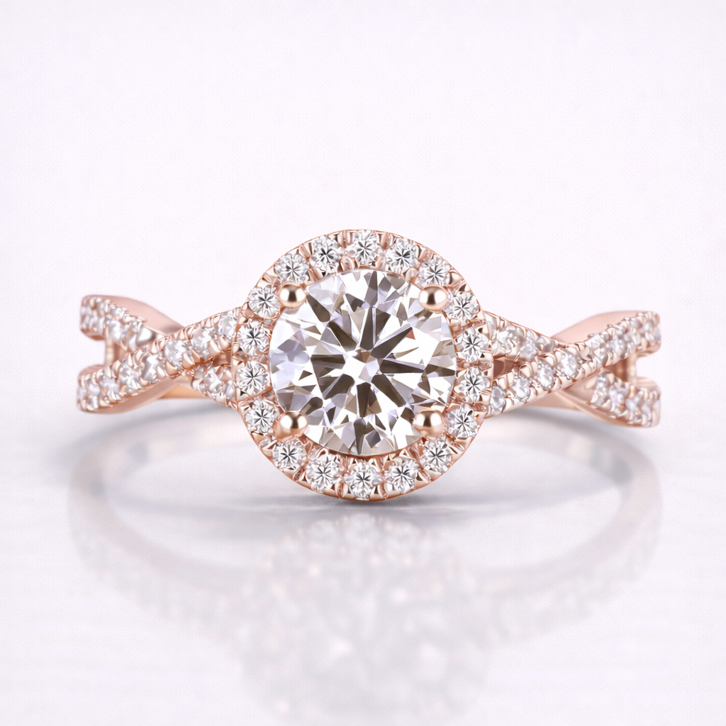 Round Cut Moissanite Diamond Twisted Engagement 14K Gold Ring