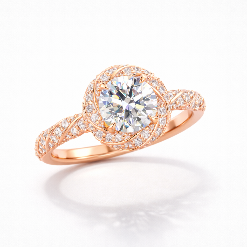 Round Cut Moissanite Diamond Twisted Pave Sterling Silver Ring