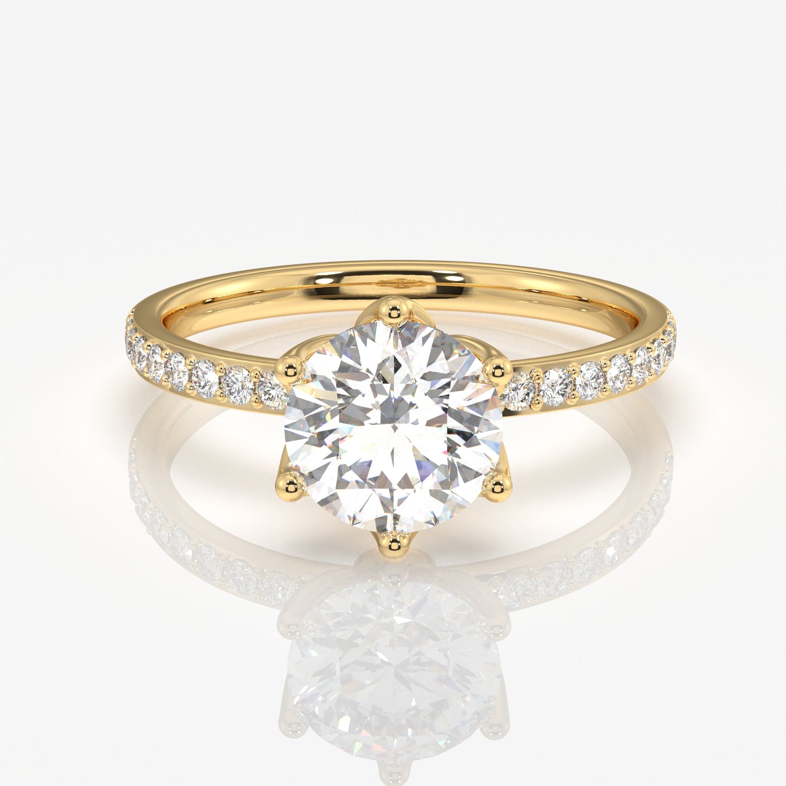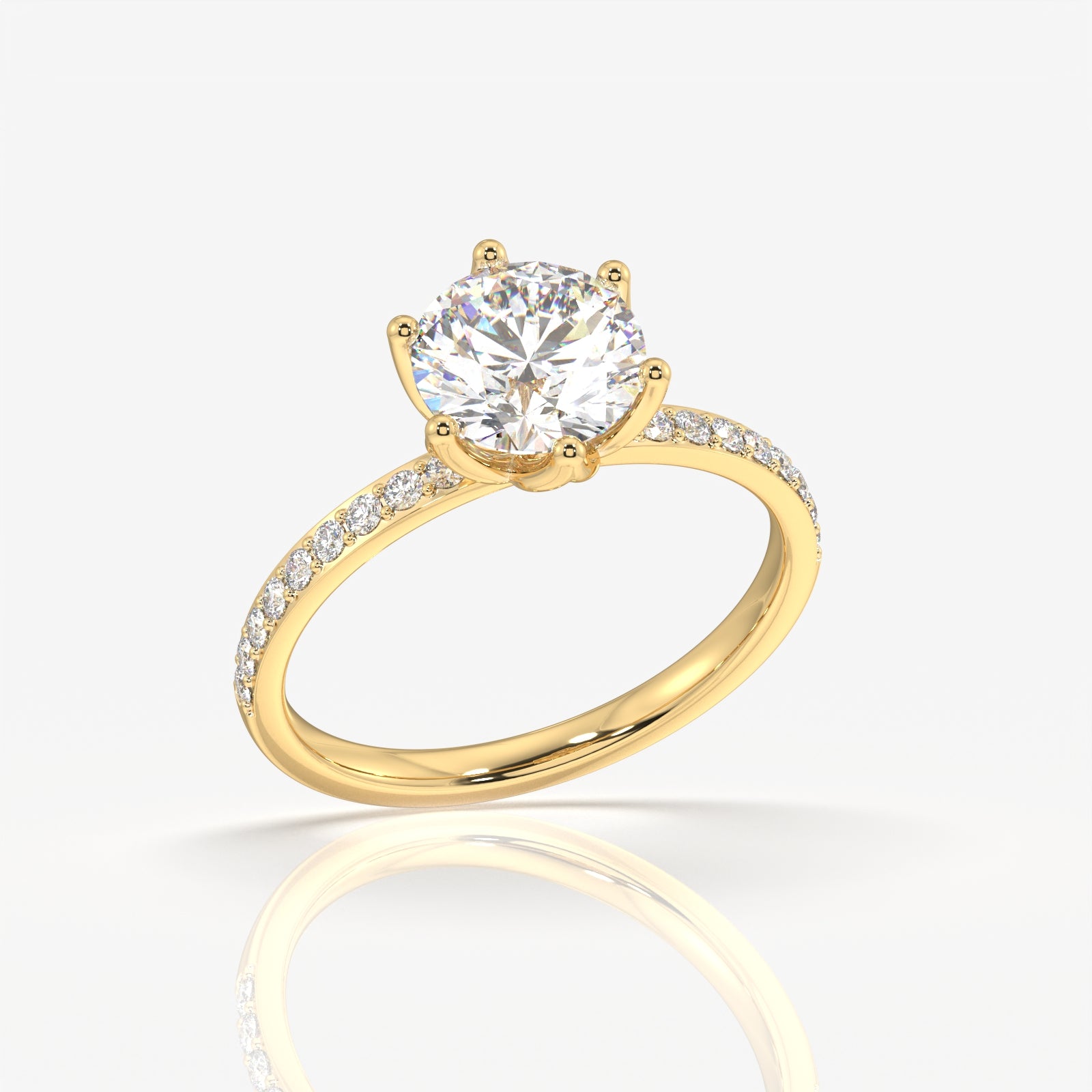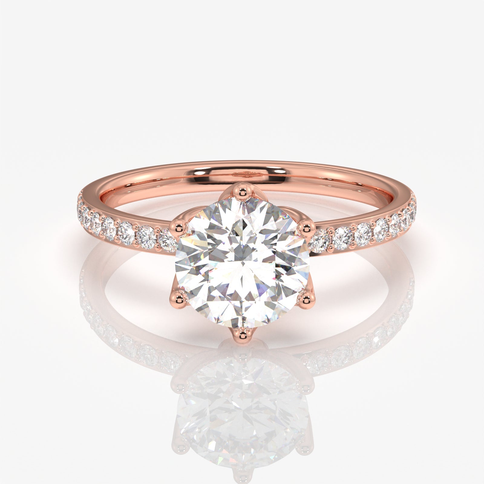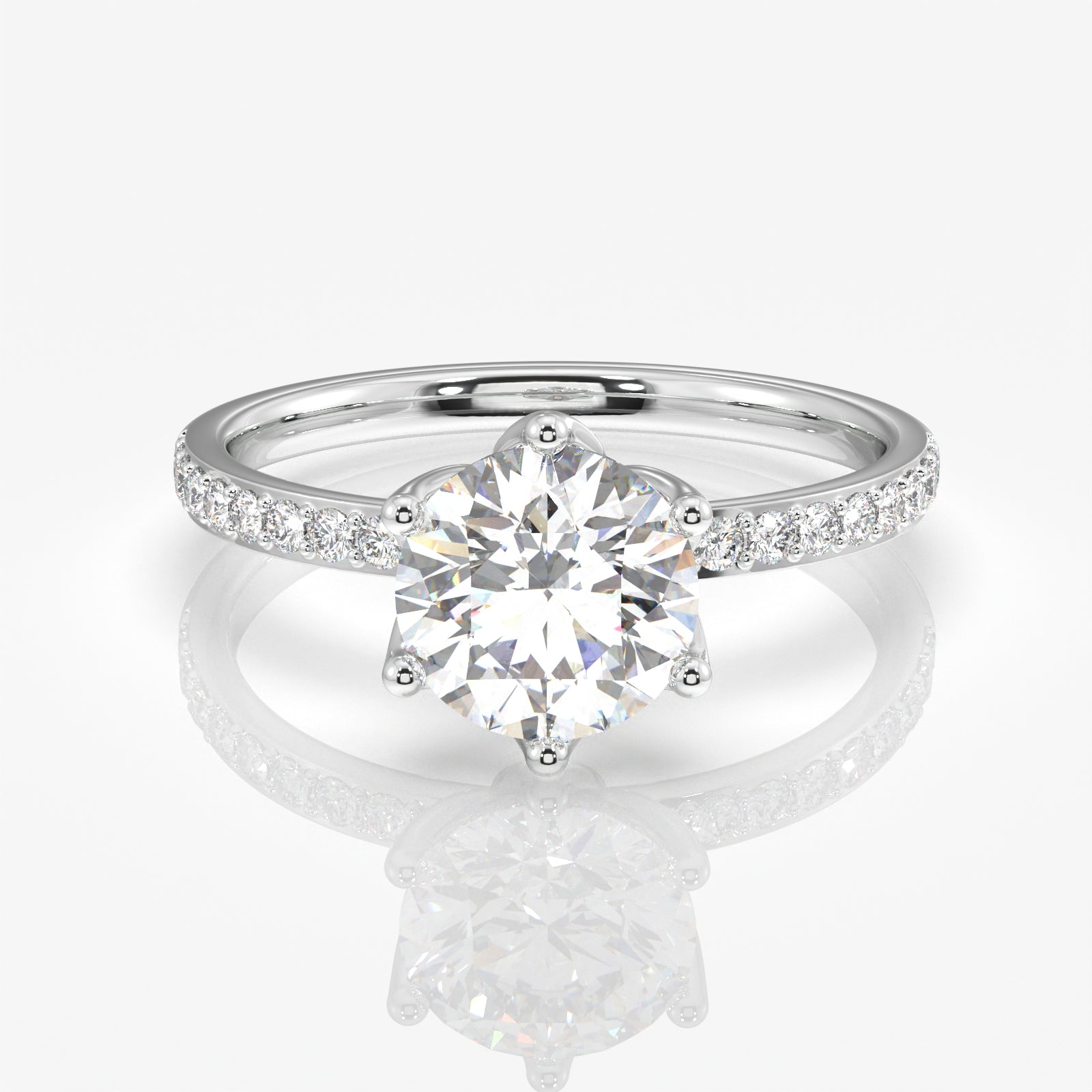 Round Cut Tulip Six Prong Moissanite Diamond Pave Sterling Silver Ring
