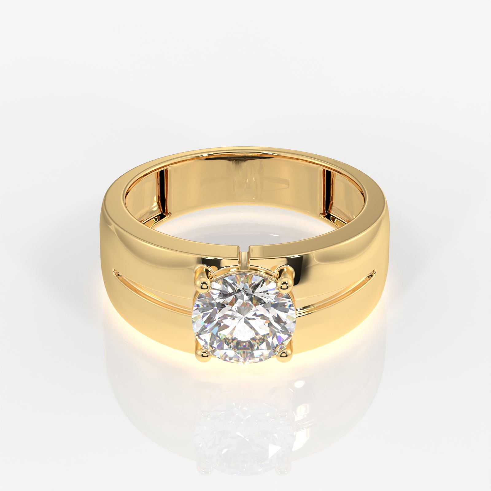 Round Moissanite Diamond, Simple Classic Men's 14k Gold Ring